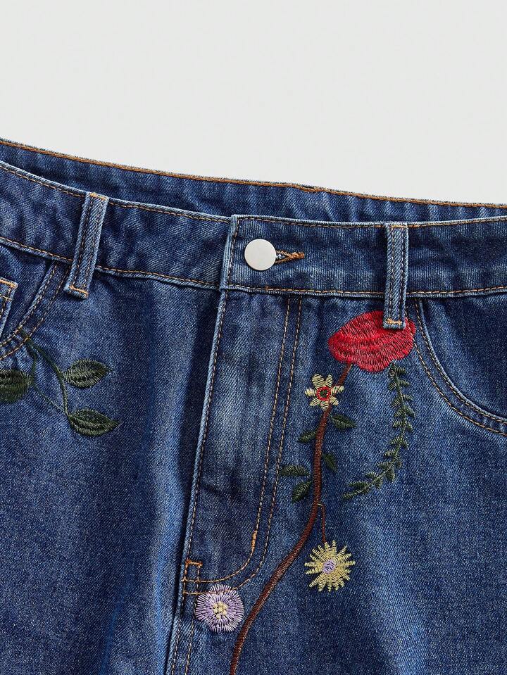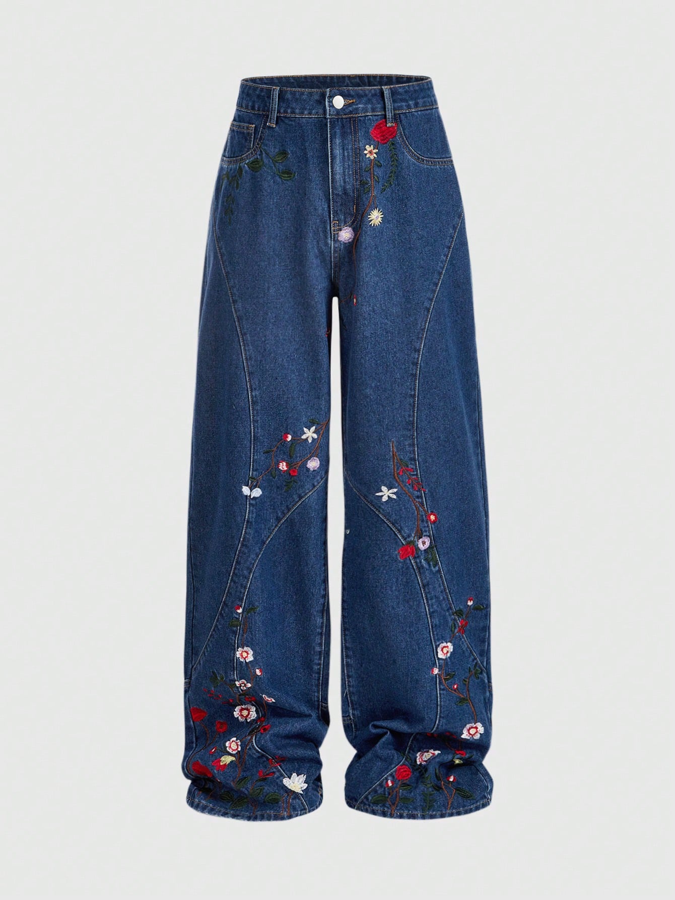Street Life Jeans droits pour hommes, lavés avec broderie florale décontractée