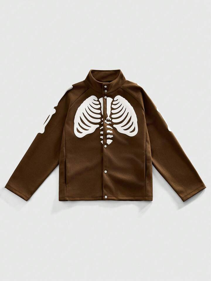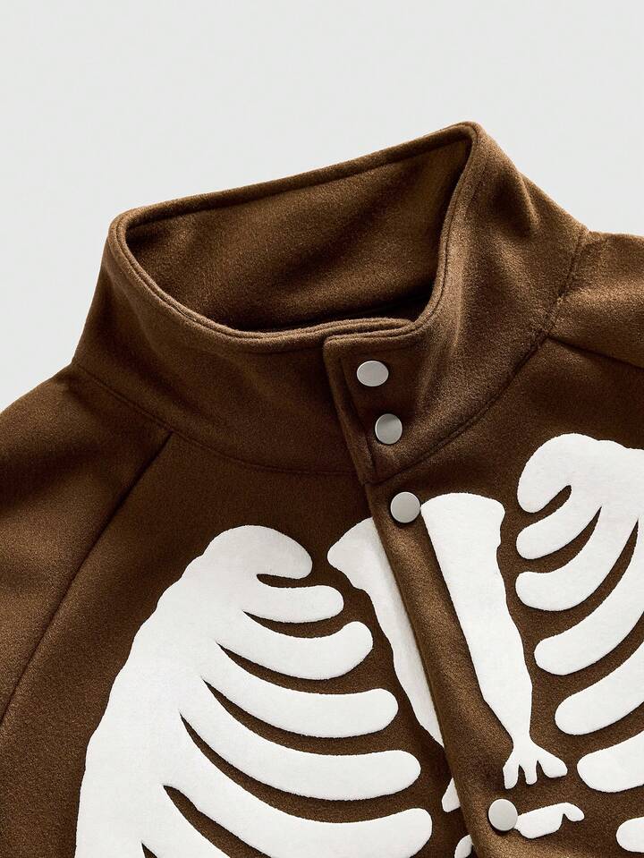 Street Life Veste décontractée pour hommes en mélange de laine avec imprimé squelette, automne/hiver