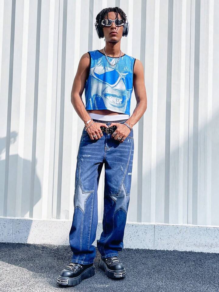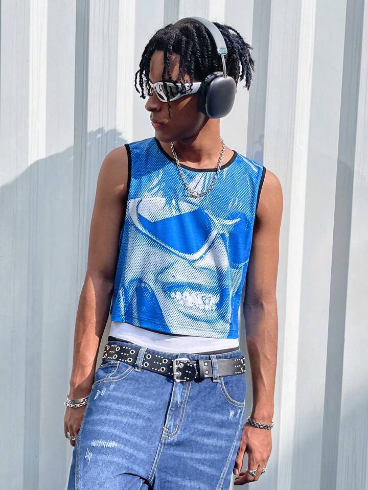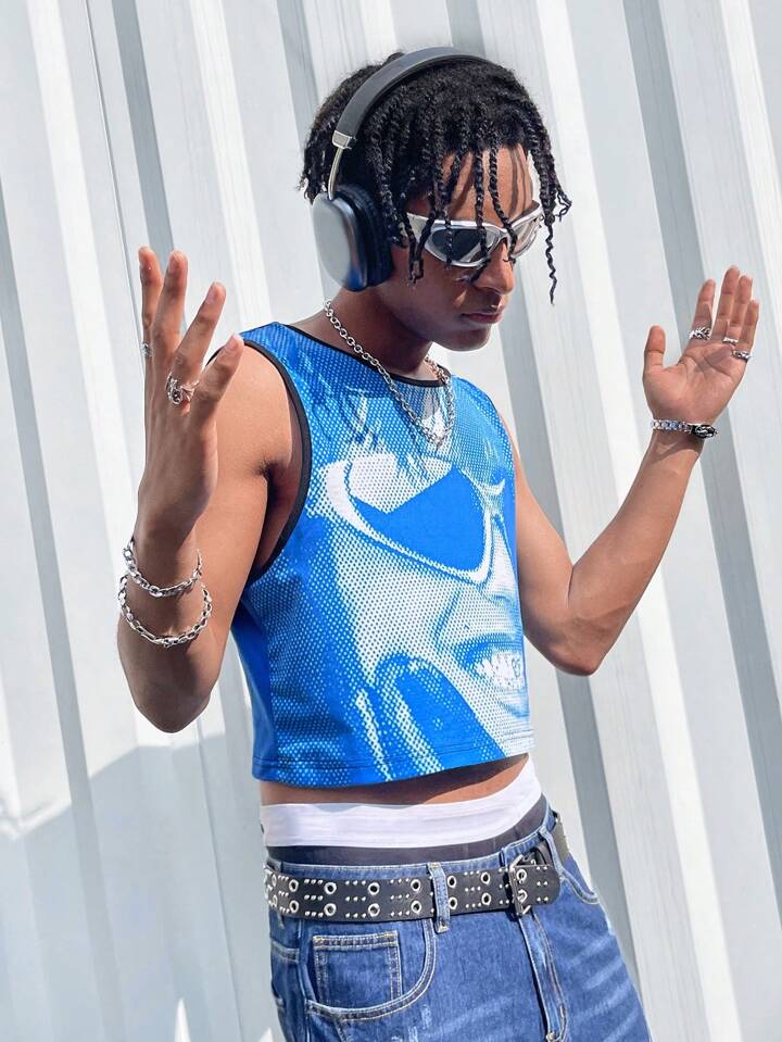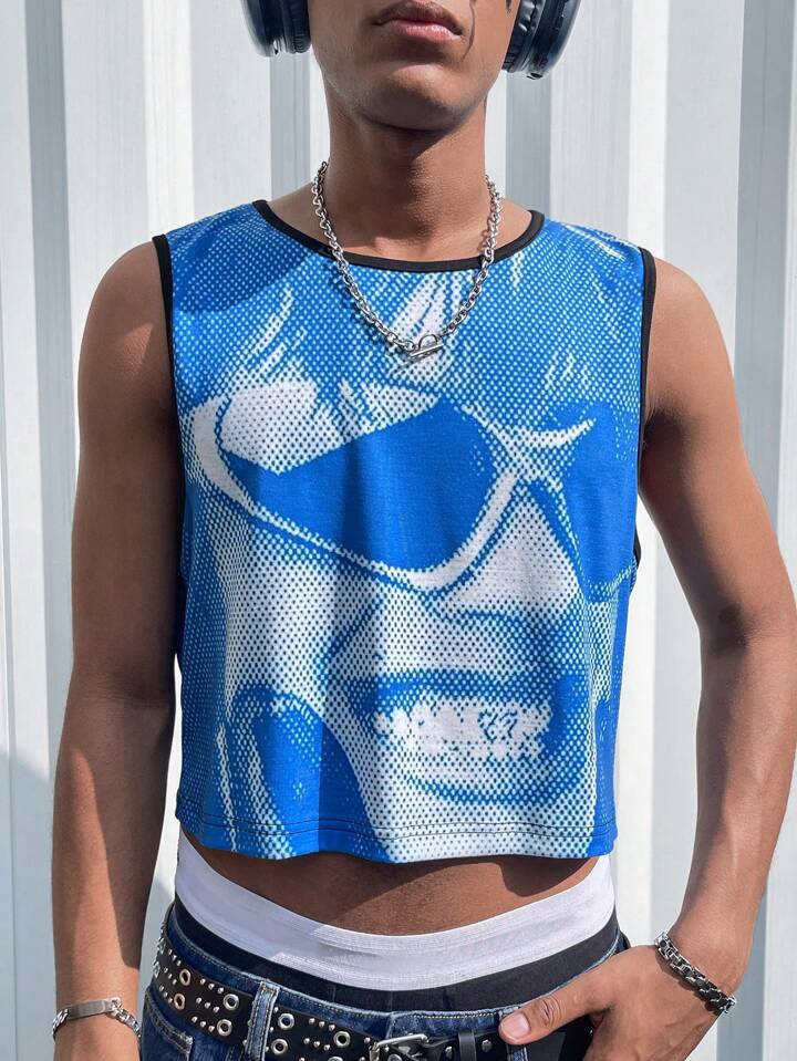 Street Life Débardeur crop top imprimé avec un personnage pour homme