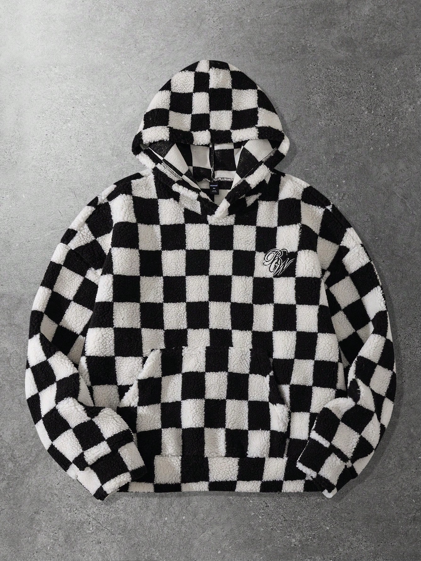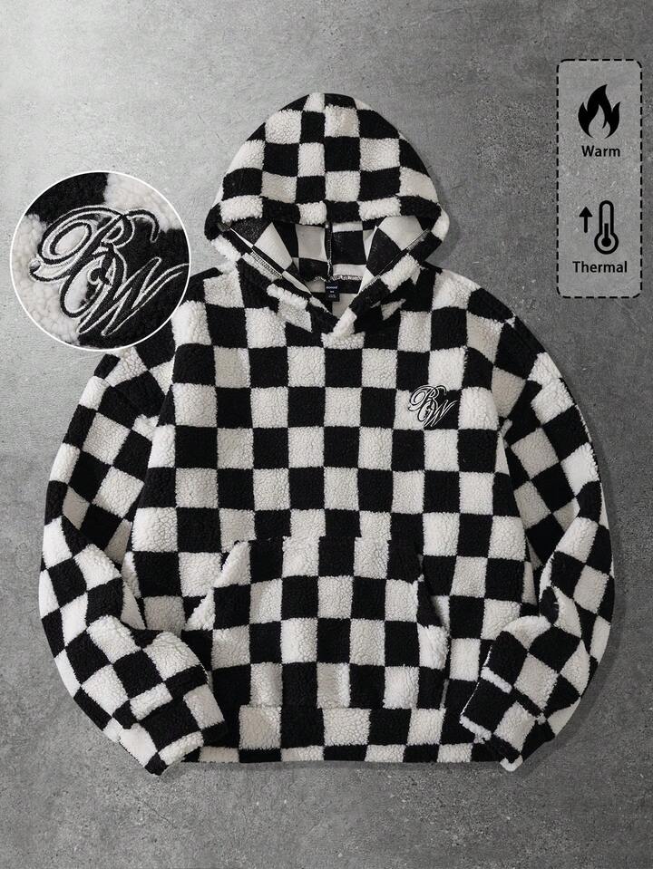 Street Life sweat-shirt à capuche avec poche kangourou à carreaux pour hommes, doublé thermique, automne/hiver