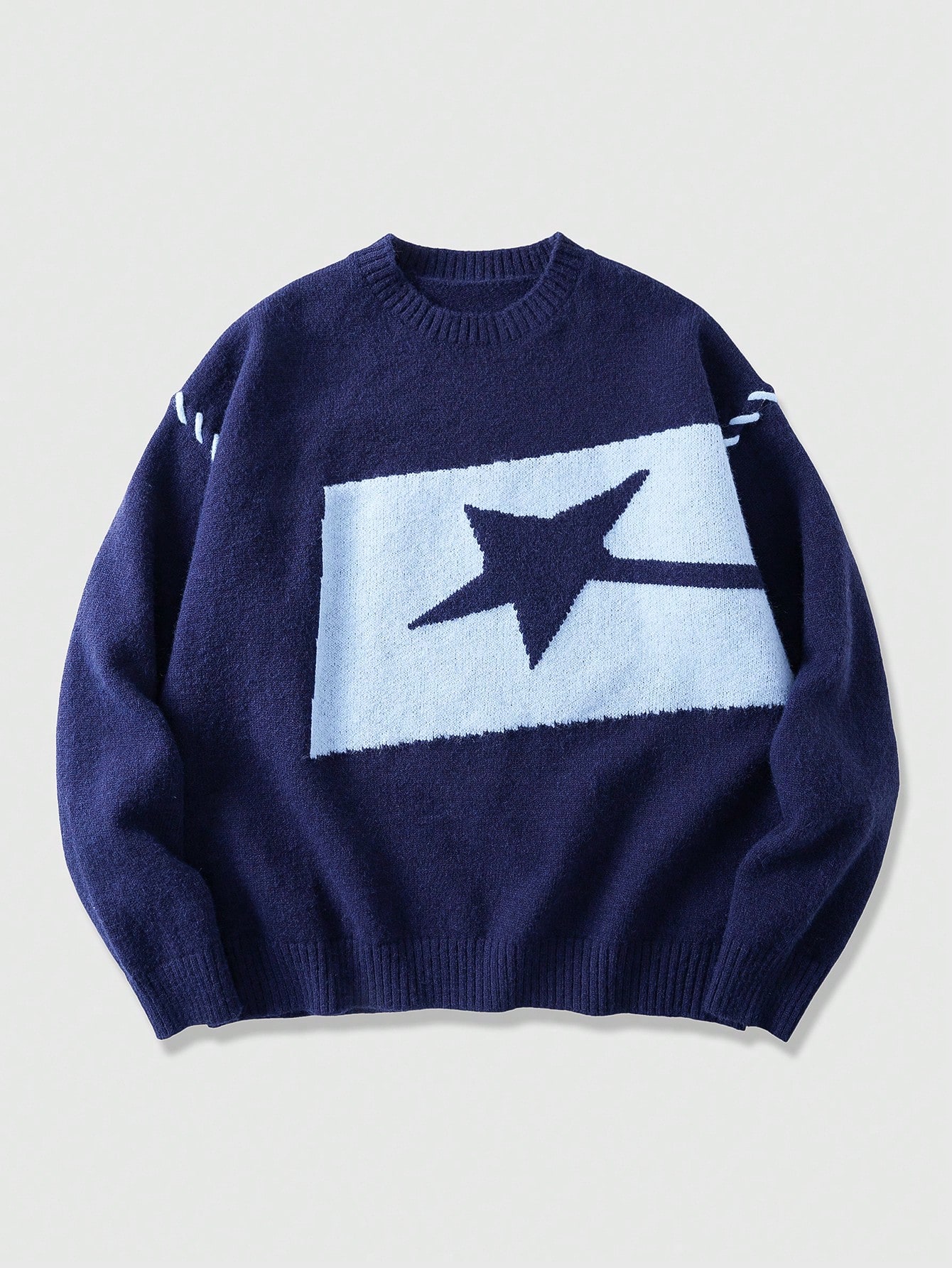 Street Life Pull col rond jacquard décontracté pour hommes, automne/hiver