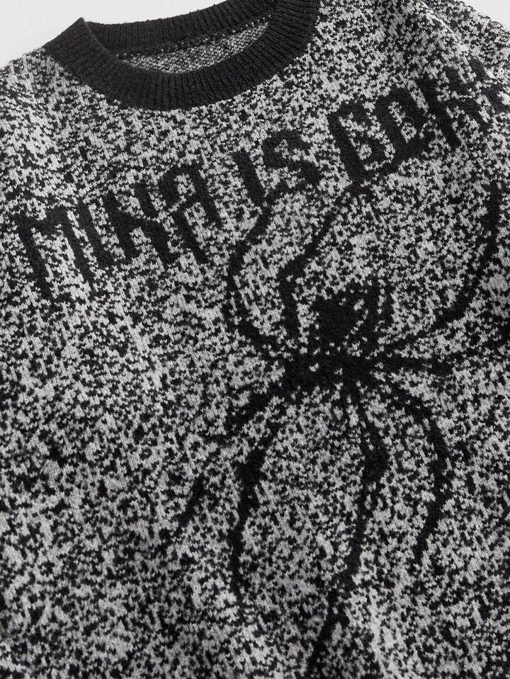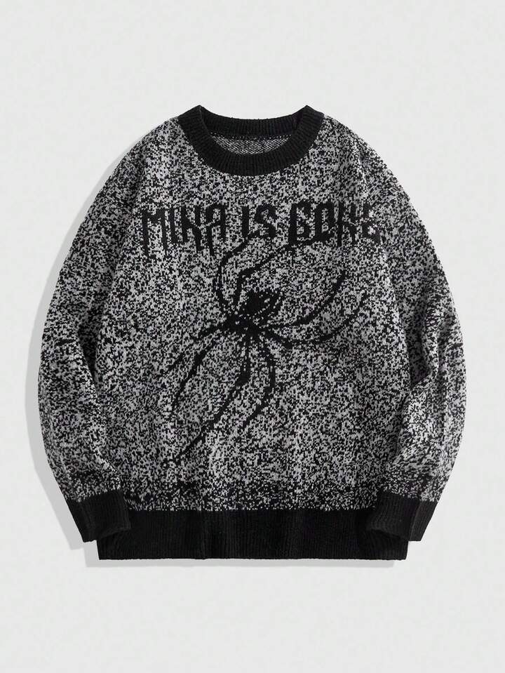 Street Life Pull col rond pour hommes avec motif jacquard d'araignée et de lettres, automne hiver