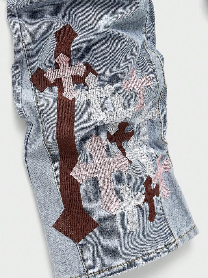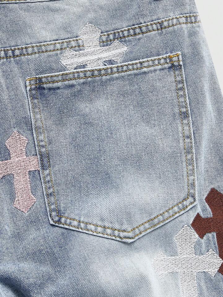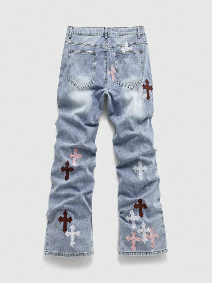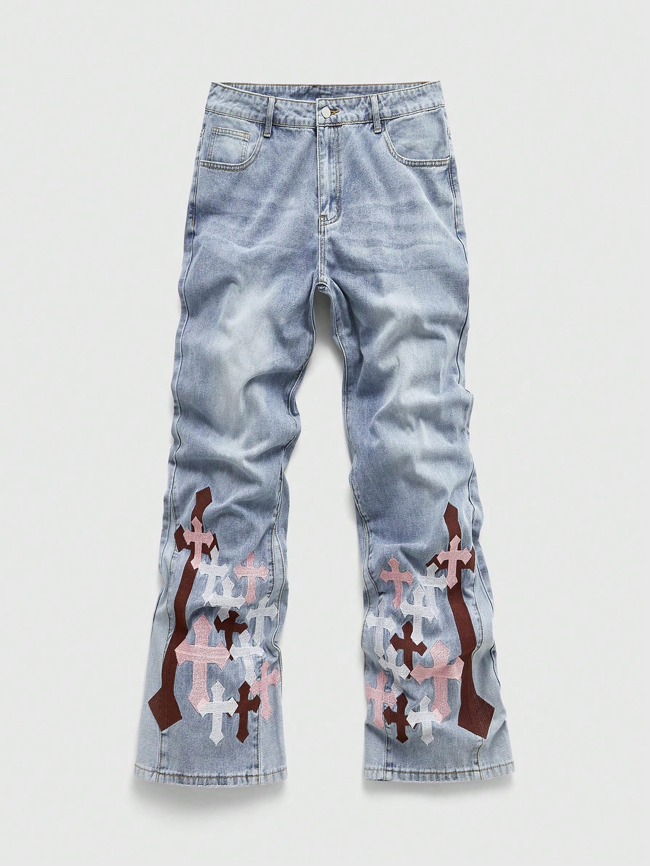 Street Life Jeans évasés avec poche à broderie croisée pour hommes