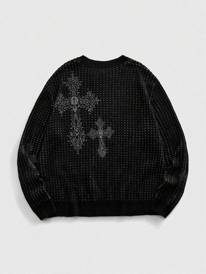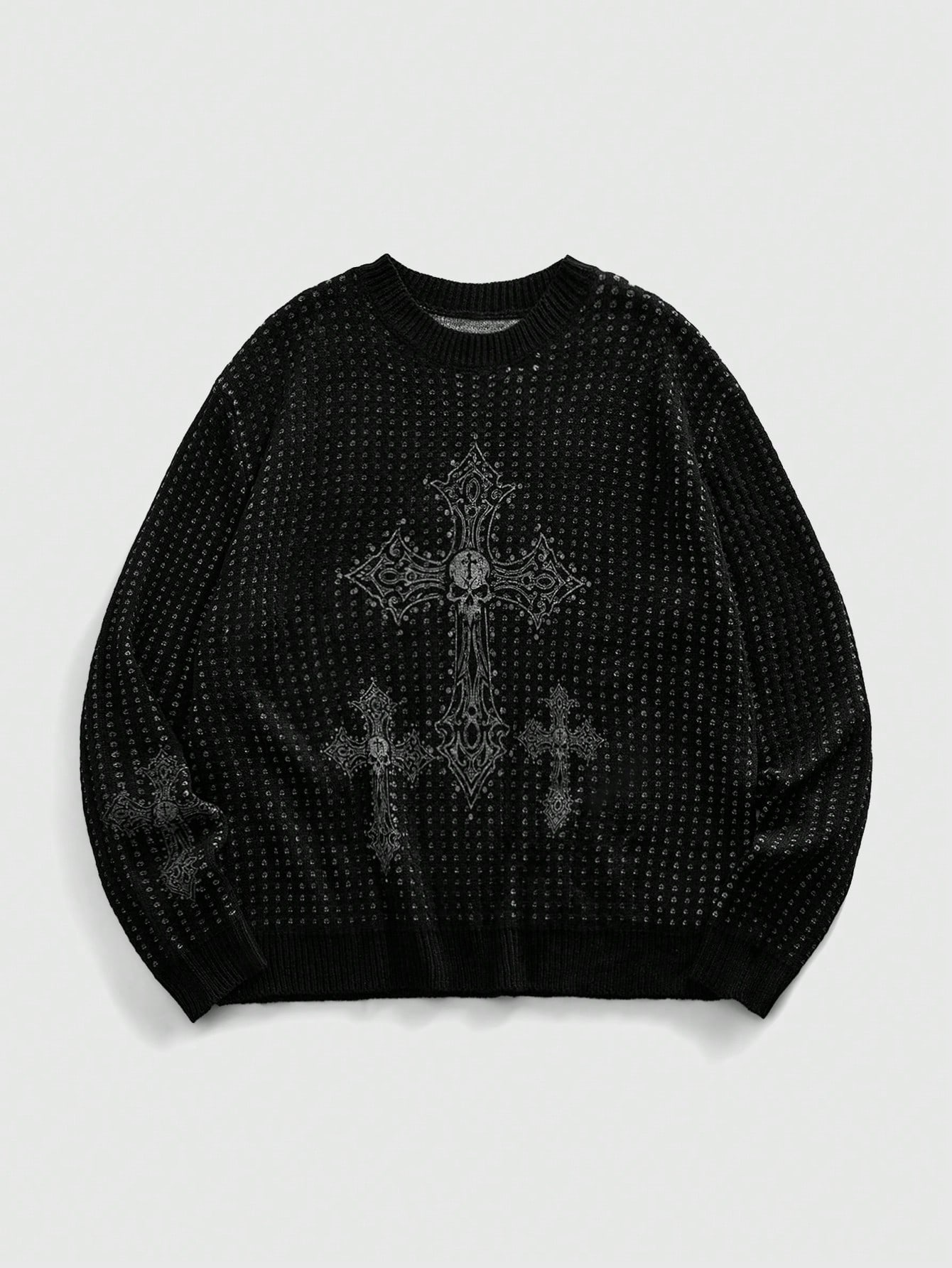 Street Life Pull ample décontracté à col ras-du-cou avec motif croix pour hommes