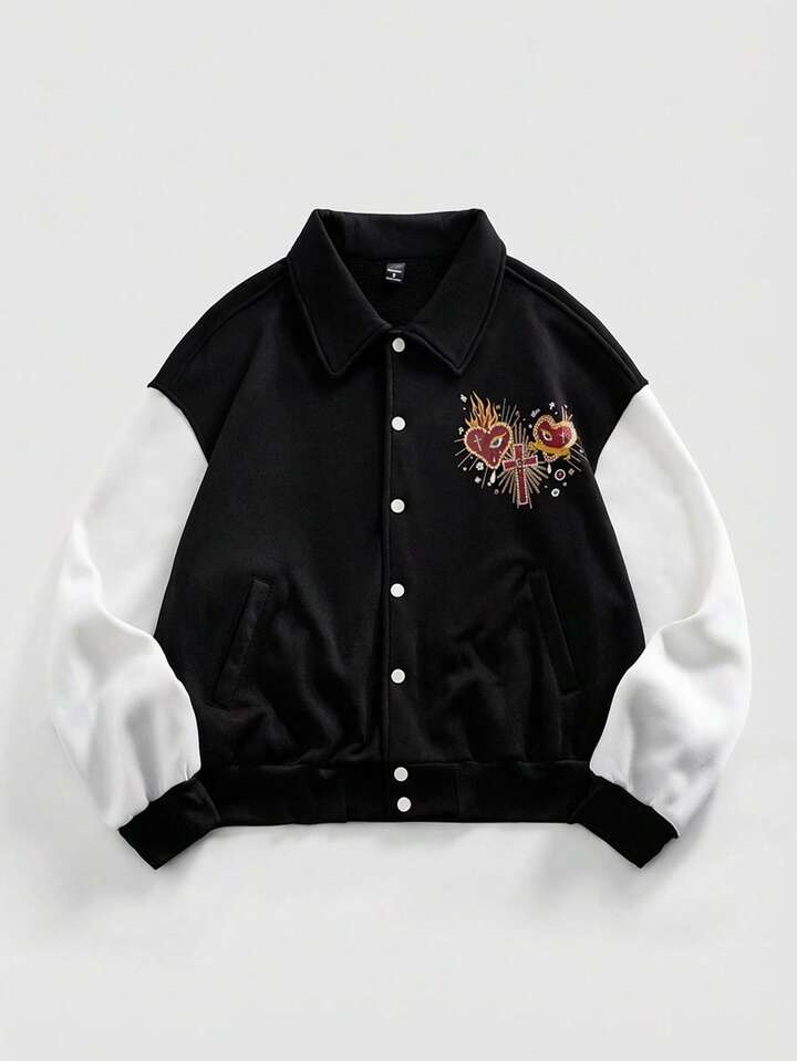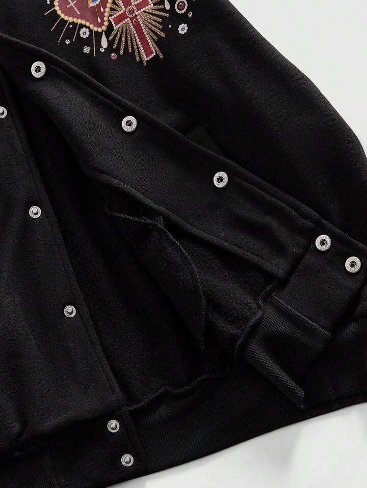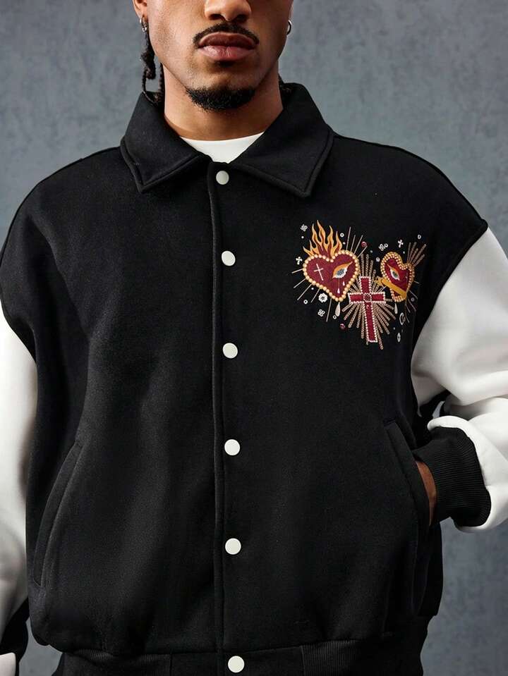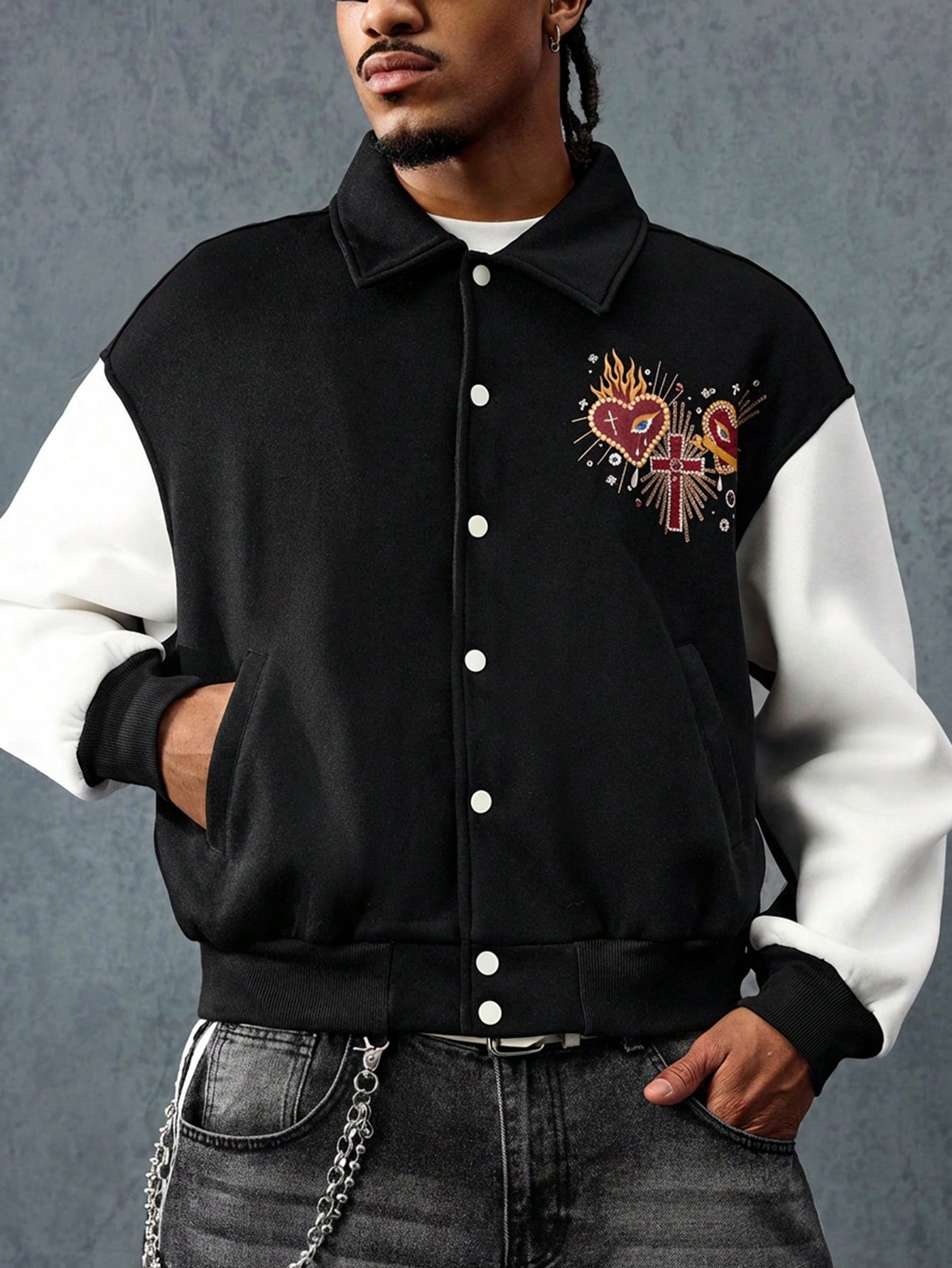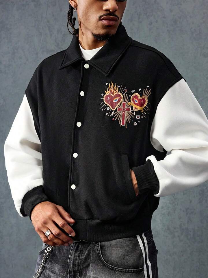 Street Life Veste décontractée à manches longues pour hommes avec imprimé croix et cœur en patchwork
