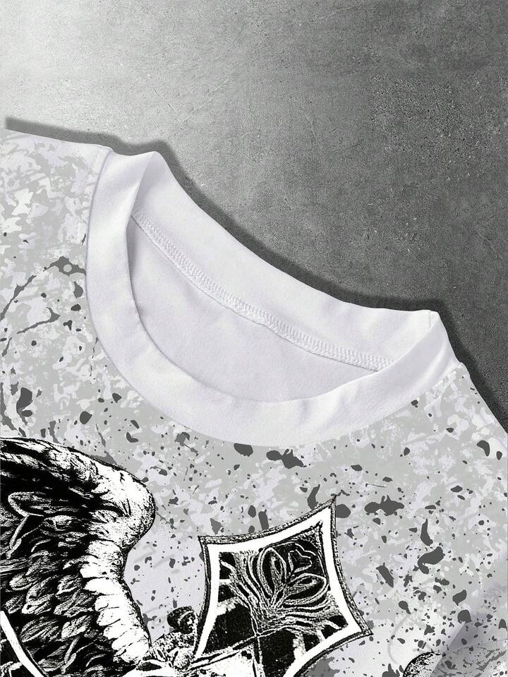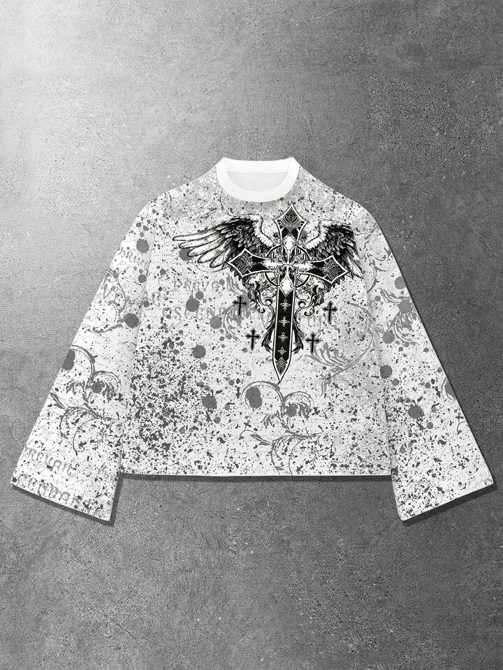 Street Life T-shirt ample à imprimé numérique croix et ailes pour hommes