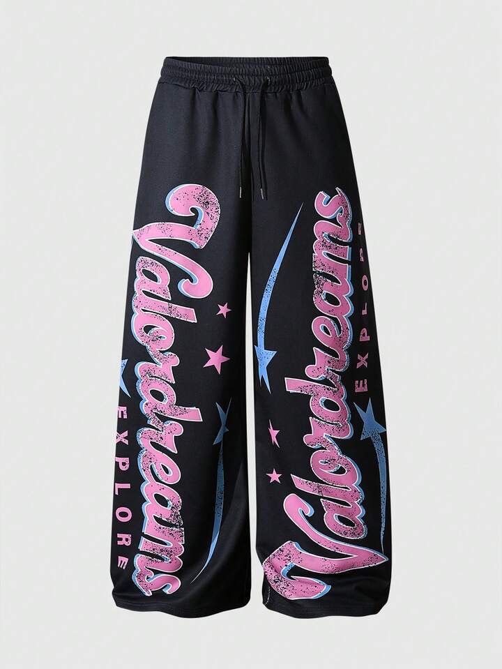Street Life Pantalon de survêtement style sombre pour hommes ! Imprimé flamme + coupe large, créant une ambiance mode rebelle