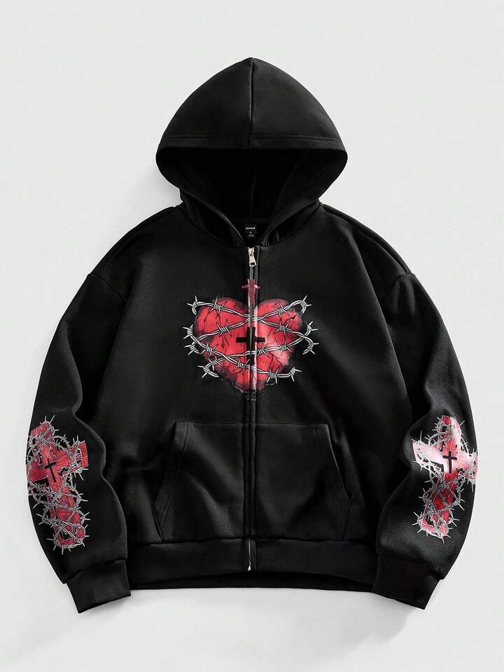 Street Life sweat-shirt à capuche avec motif de cœur épineux pour hommes