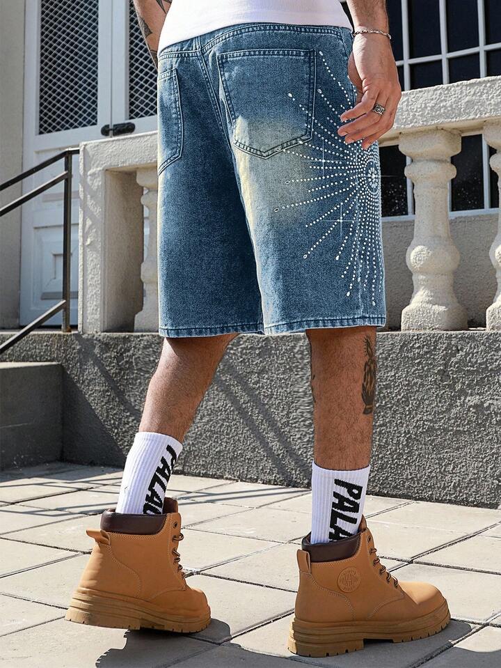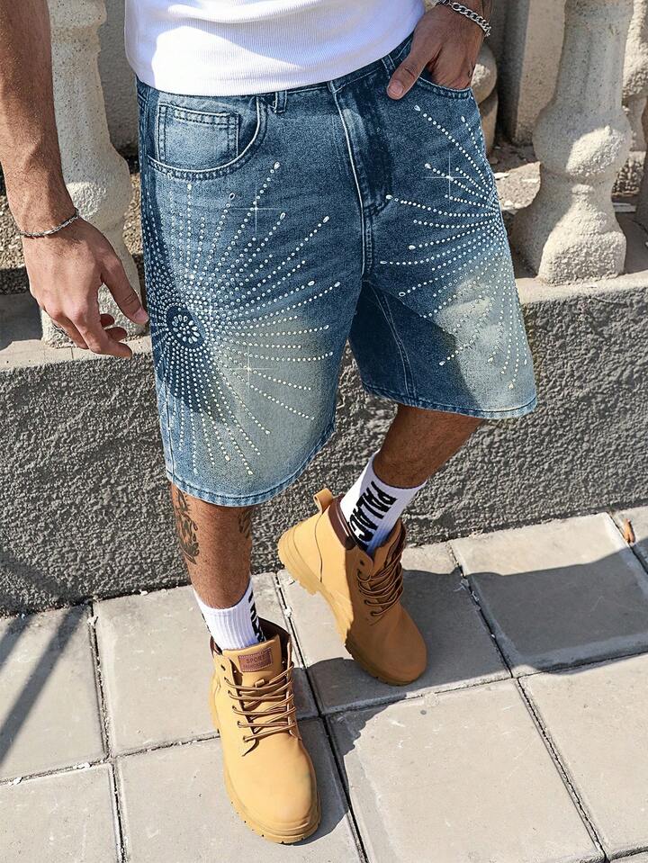Street Life Short bermuda en denim avec ornements de diamants pour hommes