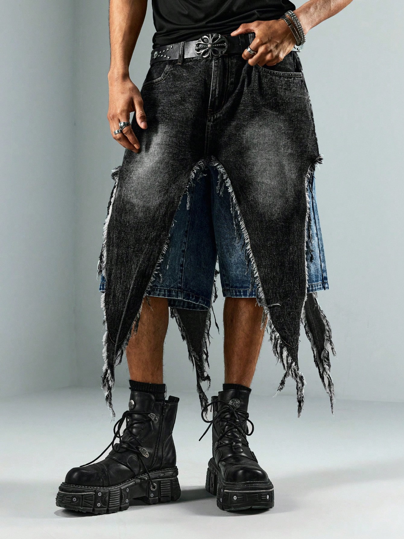 Street Life Short en jean délavé pour homme avec ourlet effiloché