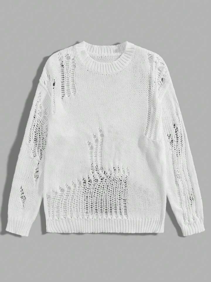Street Life Pull À Manches Longues Déchiré Pour Homme À Épaules Tombantes