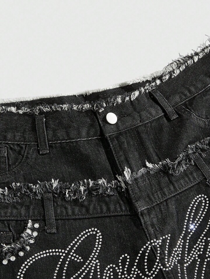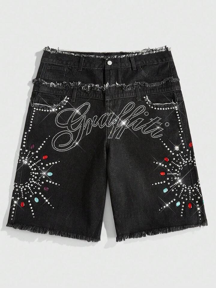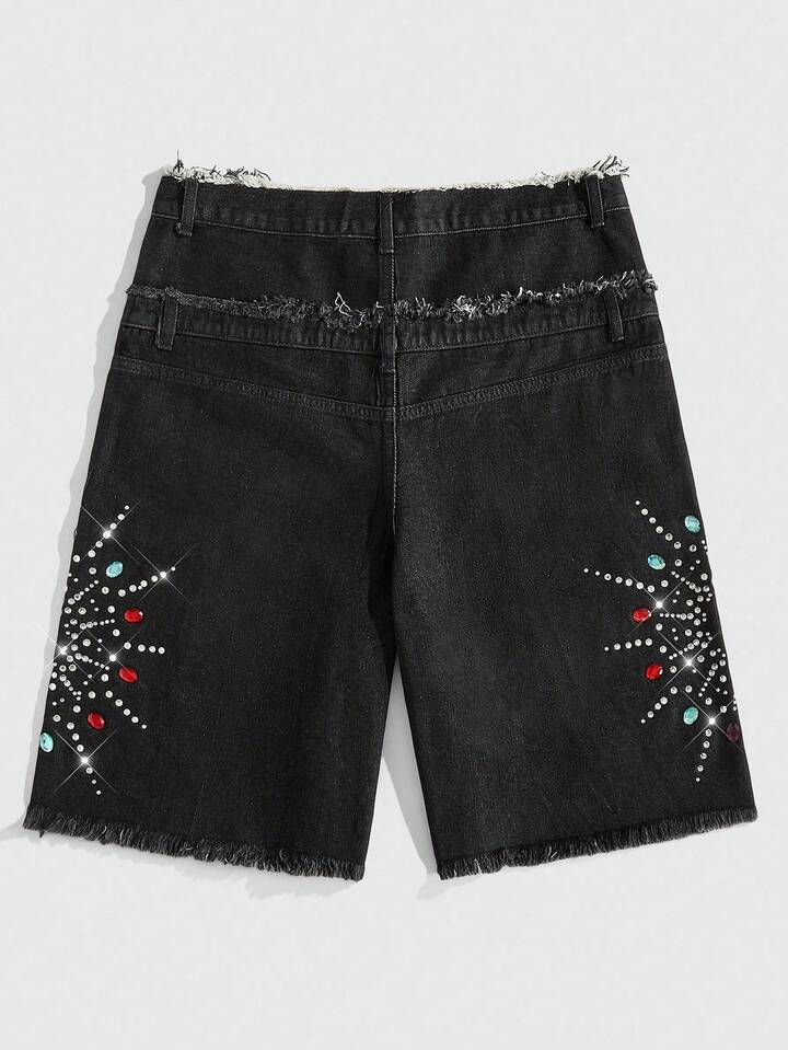 Street Life Short en jean à double couche avec diamants scintillants pour hommes