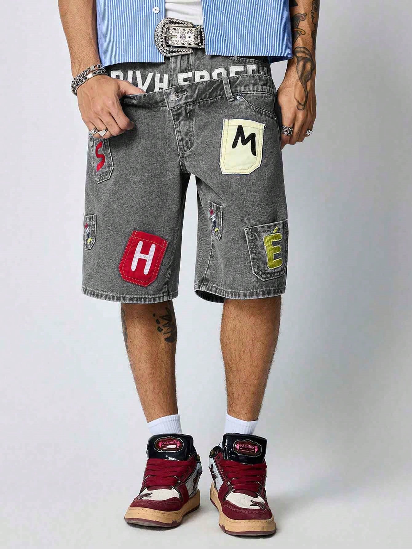 Street Life Shorts en denim à double couche pour hommes avec lettres brodées à la taille