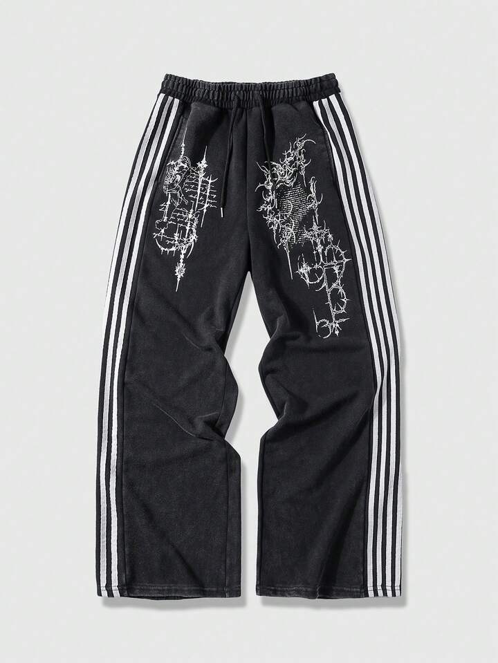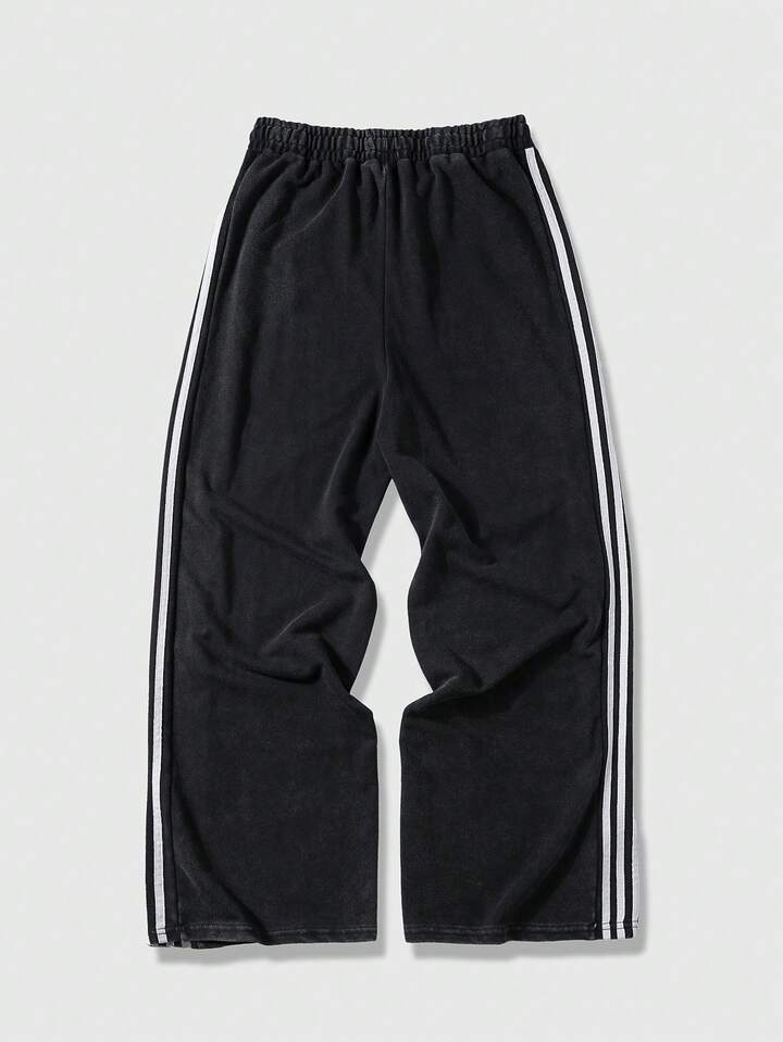 Street Life Pantalon de survêtement décontracté pour hommes à taille élastique avec cordon de serrage, coupe droite et ample, style rayé