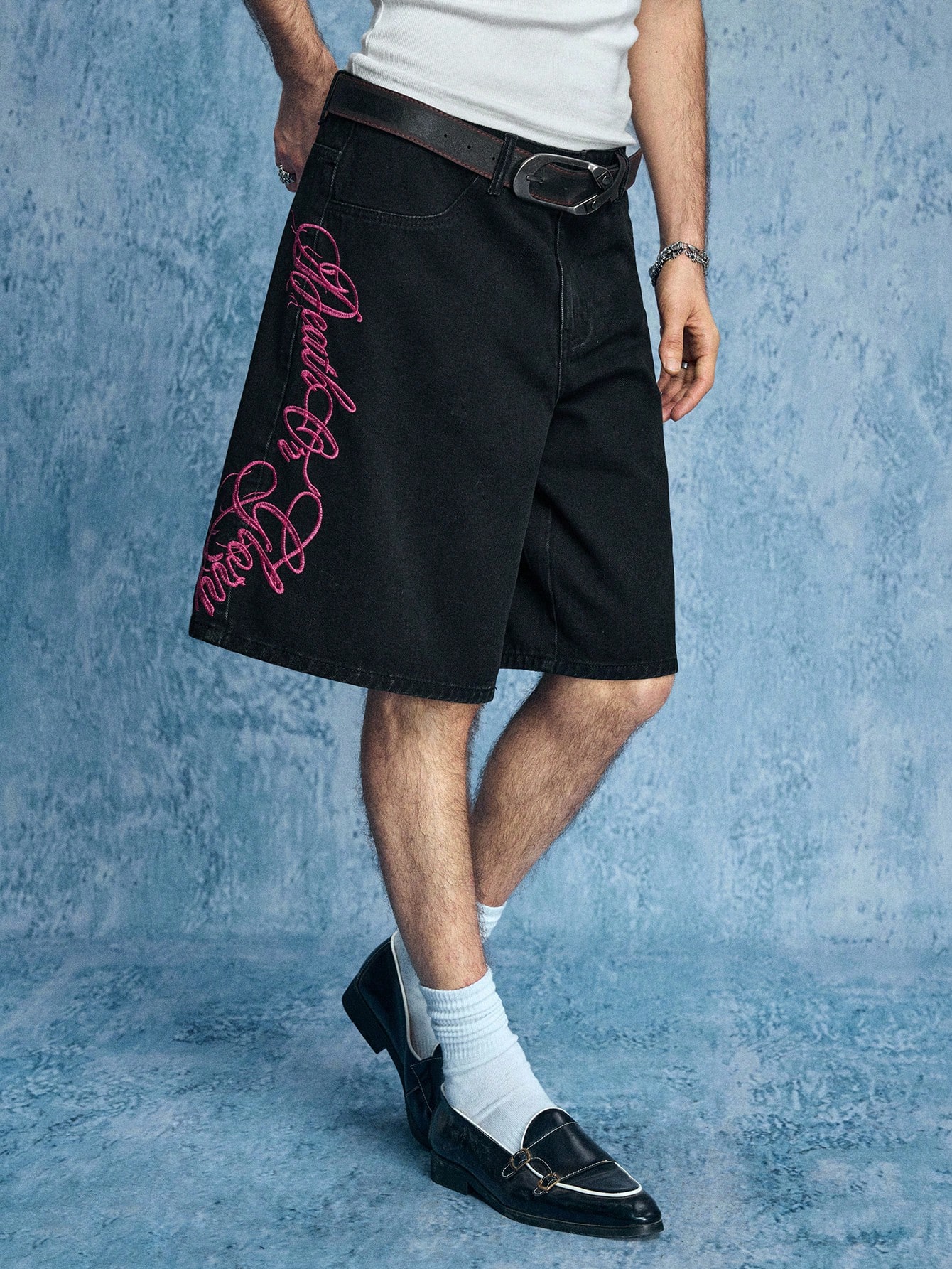 Street Life Shorts en jean à motif brodé pour hommes