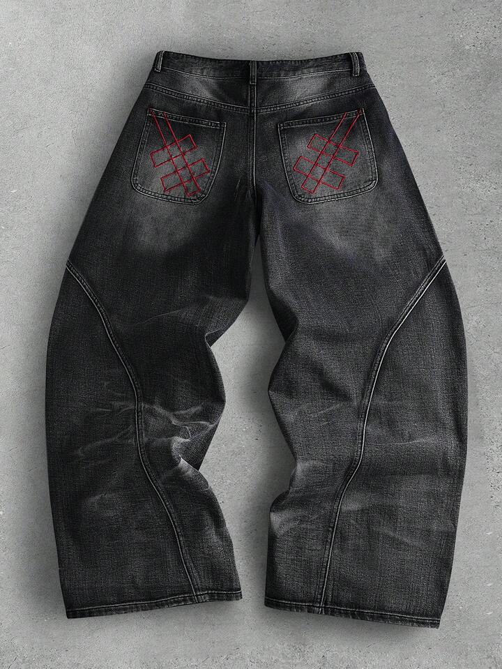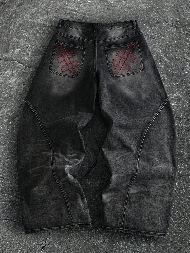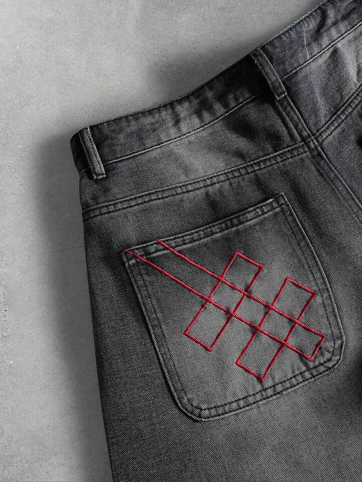 Street Life Jeans coupe décontractée à motif brodé pour hommes