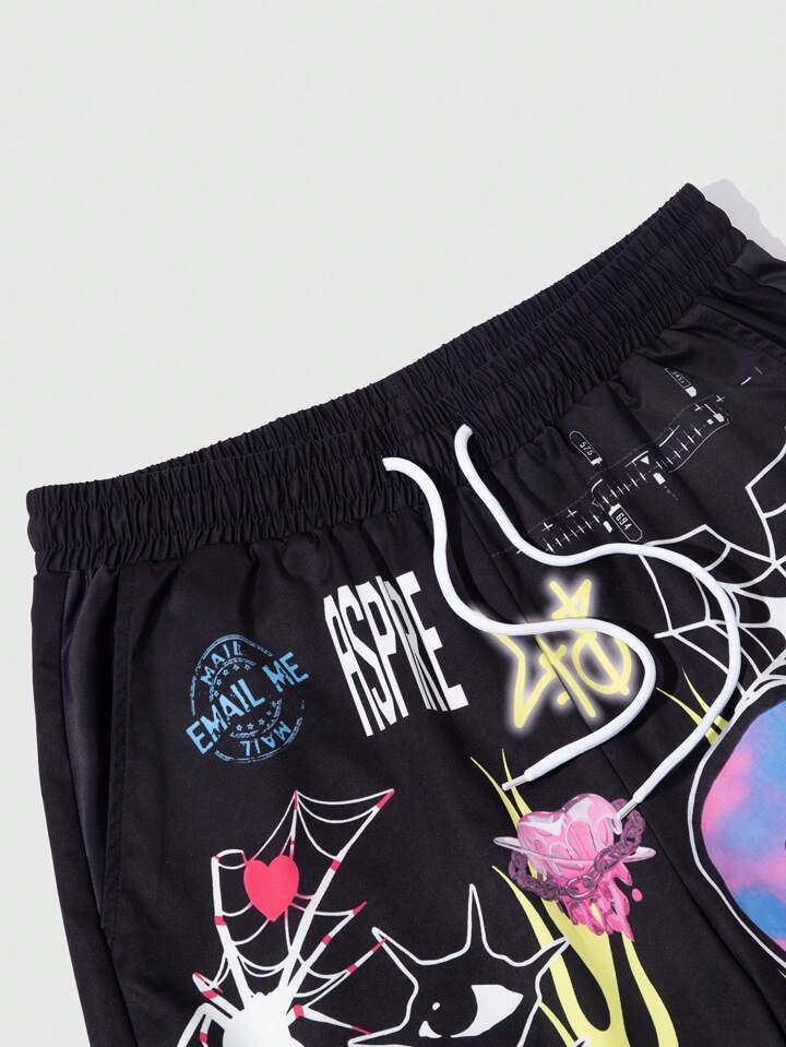 Street Life Shorts à imprimé graffiti de mode pour hommes, été