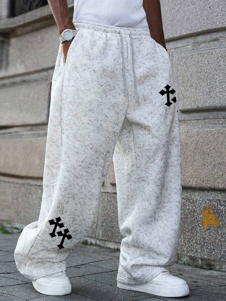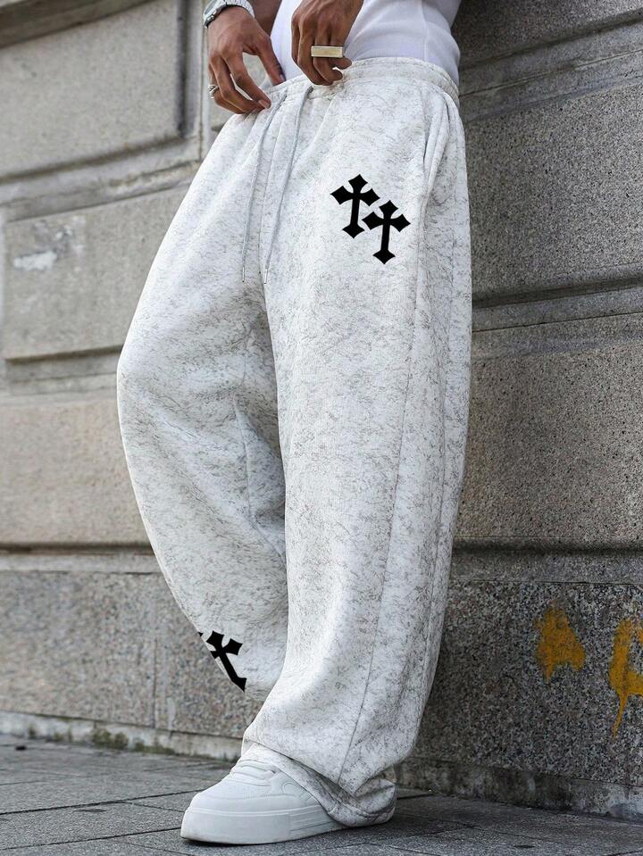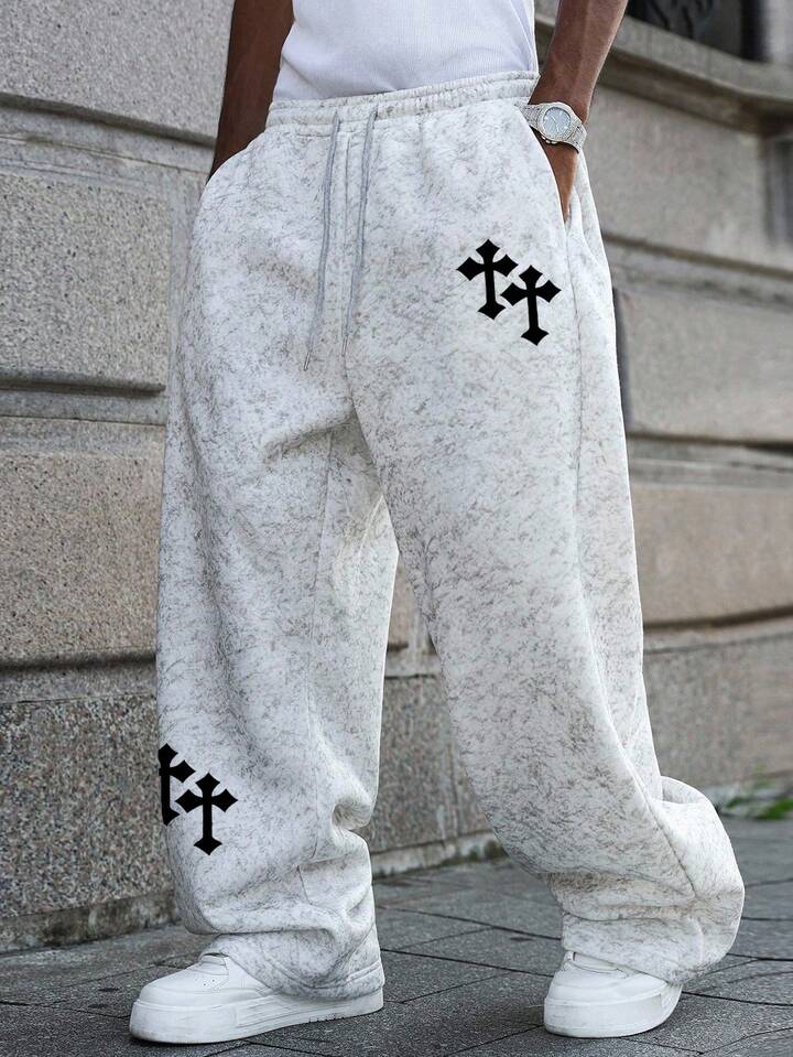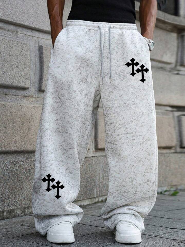 Street Life Pantalon de survêtement ample à motif mode pour hommes, pantalon décontracté imprimé croix