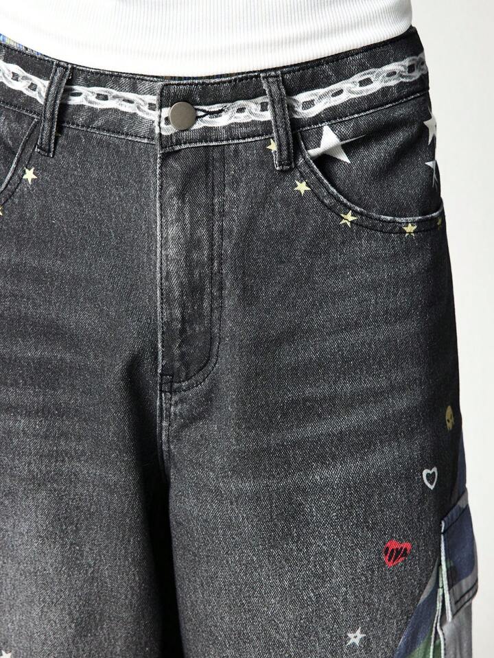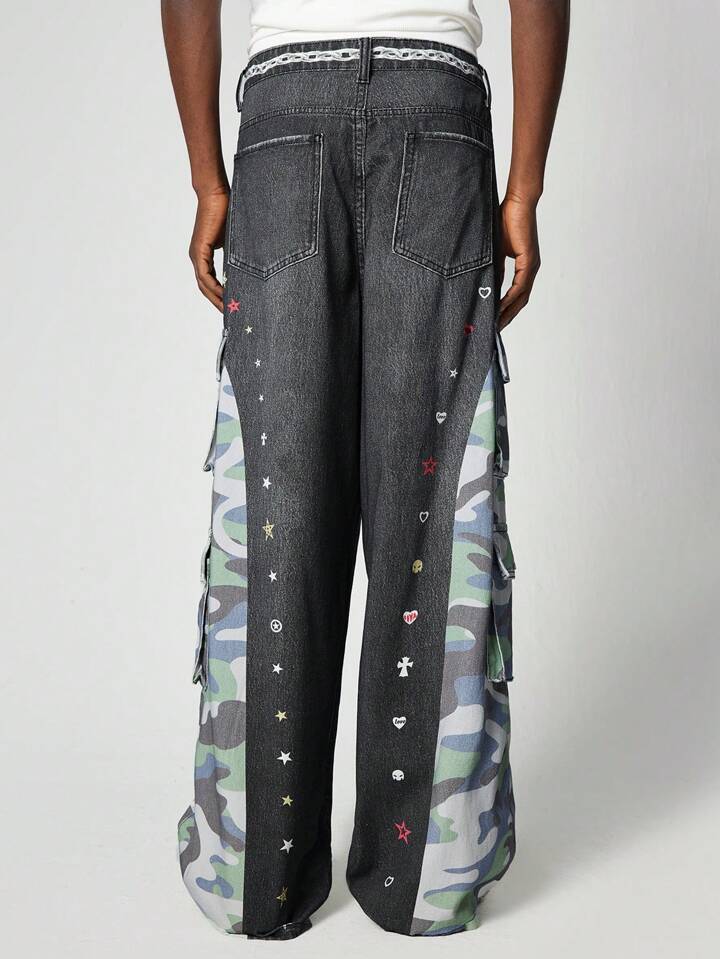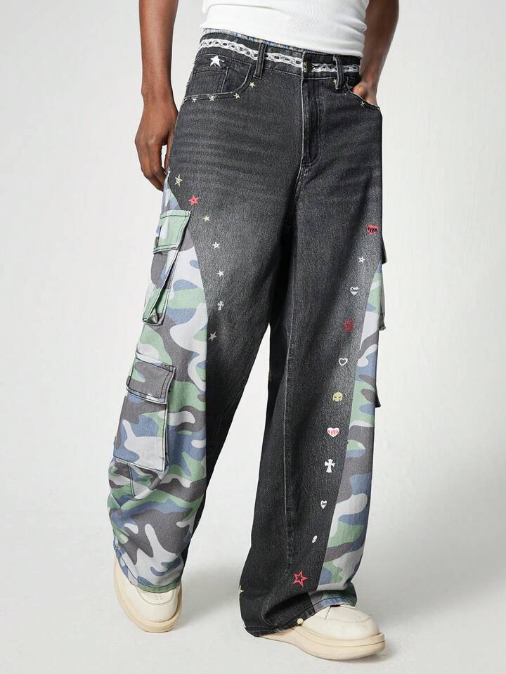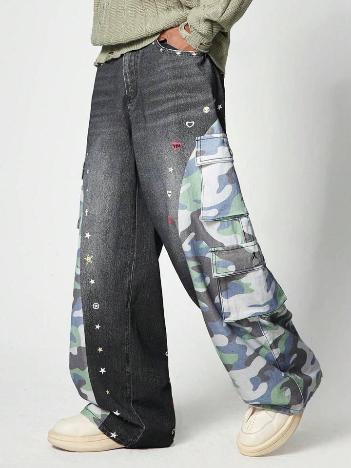 Street Life Jeans cargo homme mode lavé délavé patchwork camouflage