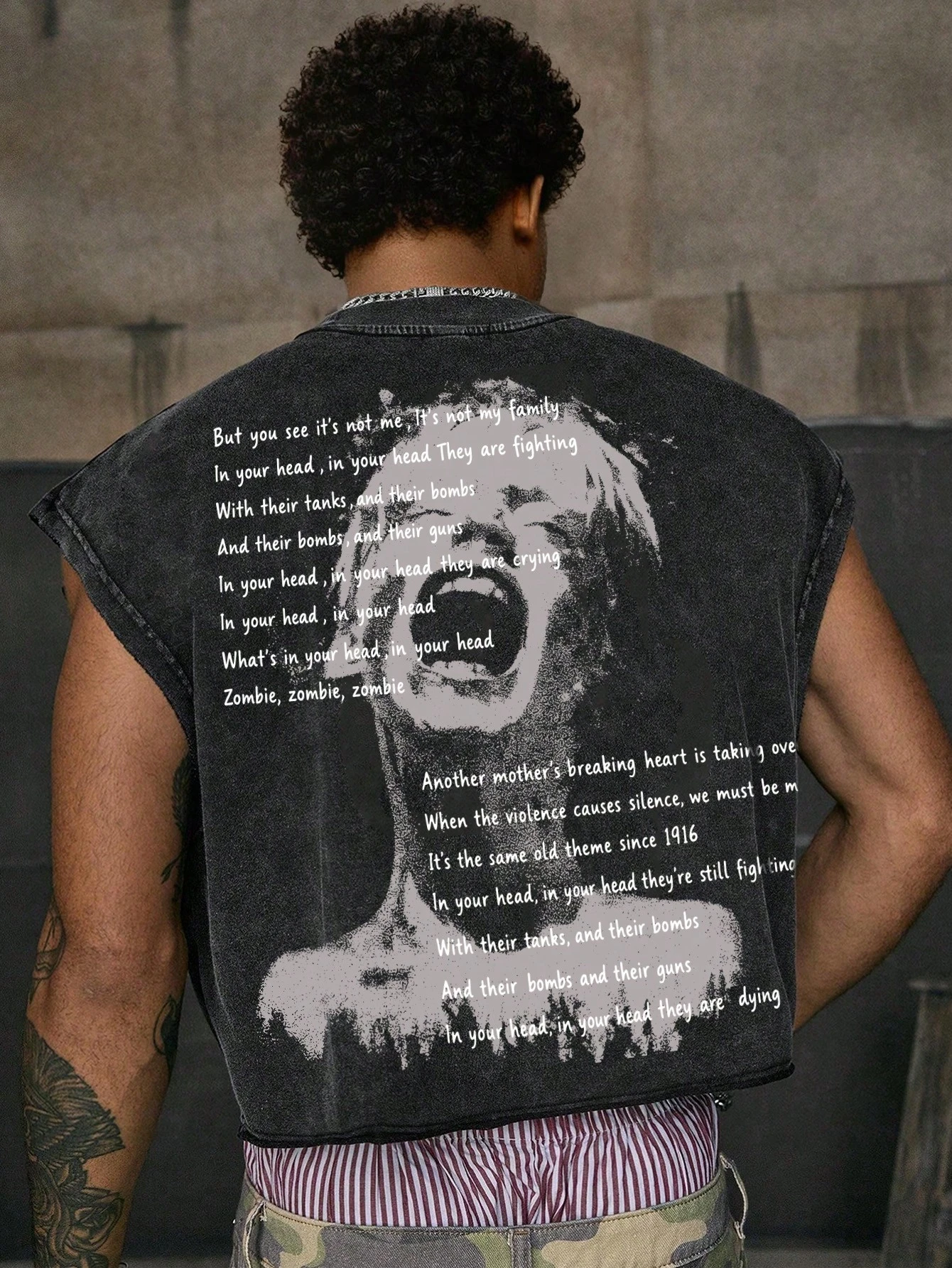 Street Life Débardeur homme à col rond avec slogan et portrait graphique, pour l'été