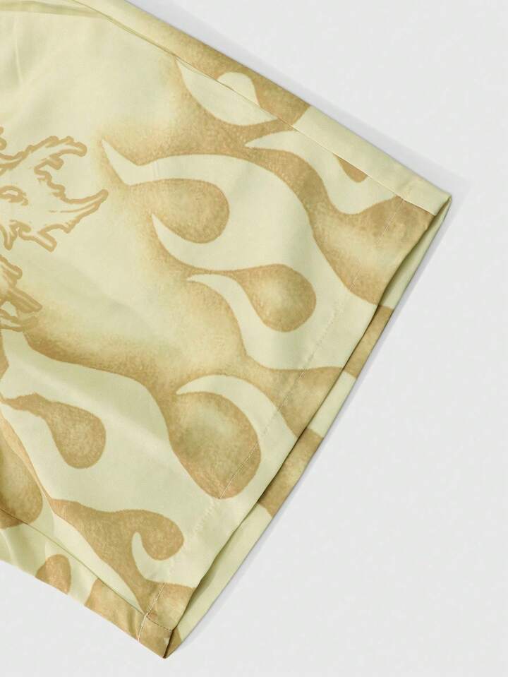 Street Life Shorts tissés à cordon de serrage pour hommes à imprimé flamme, adapté pour le port quotidien au printemps et en été