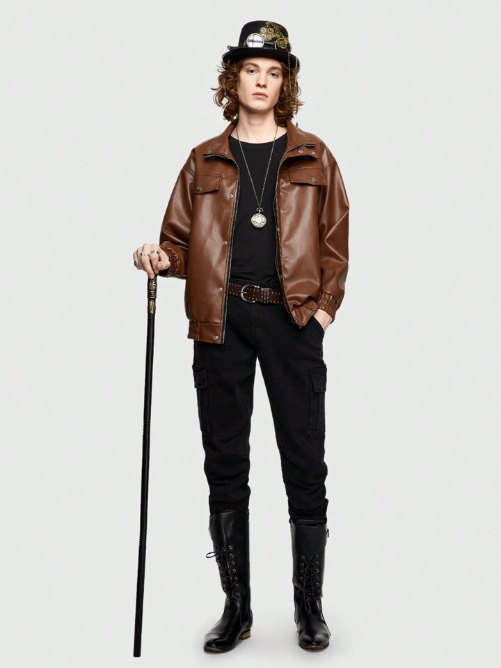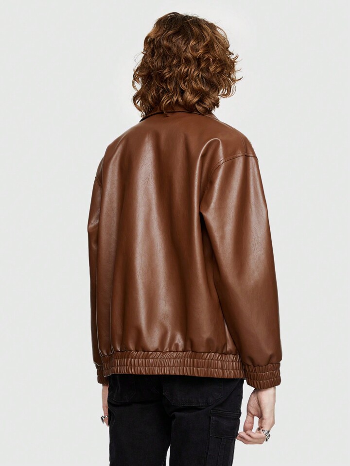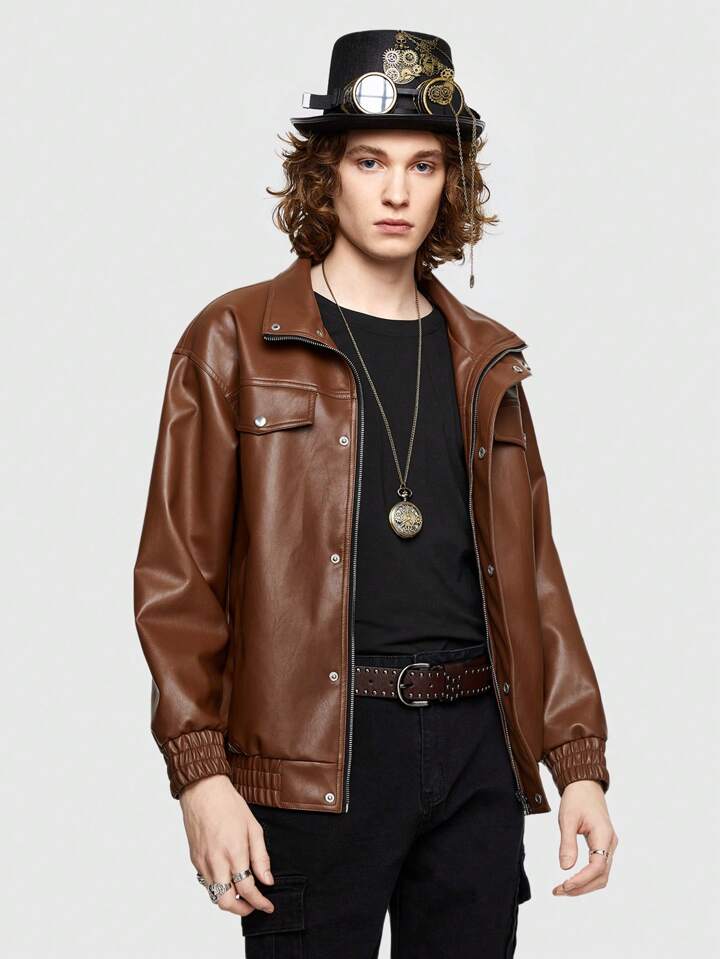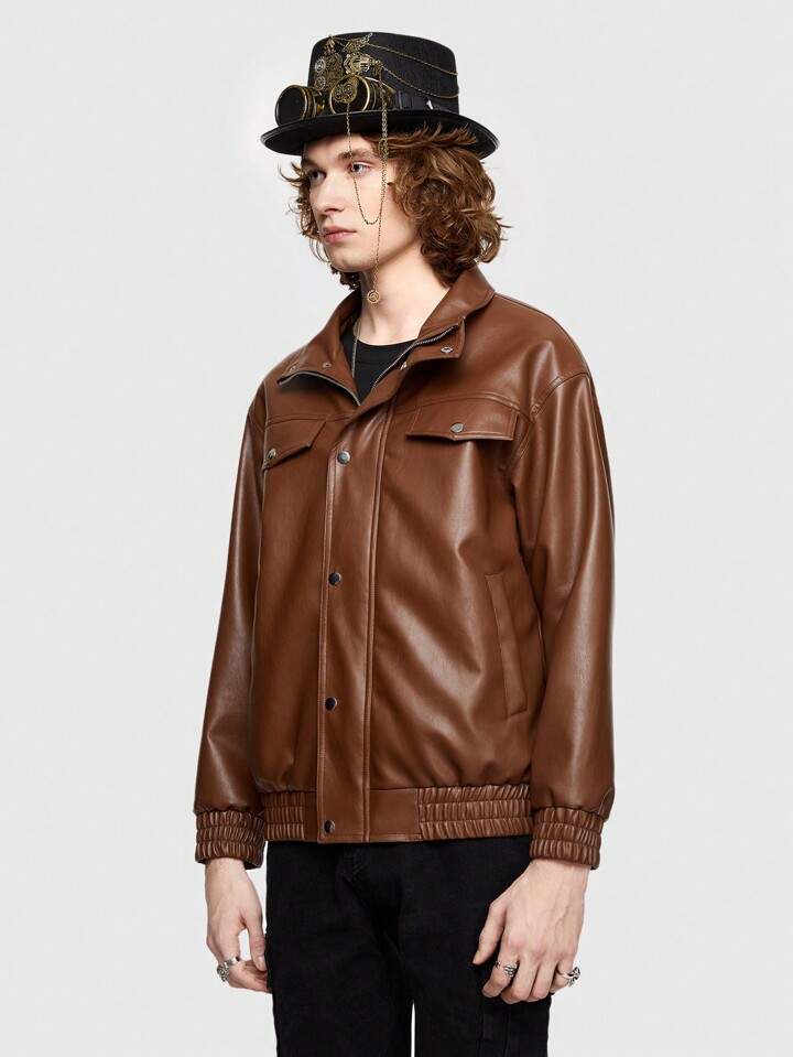 Street Life Veste En PU Pour Homme À Fermeture À Glissière À Poche À Rabat