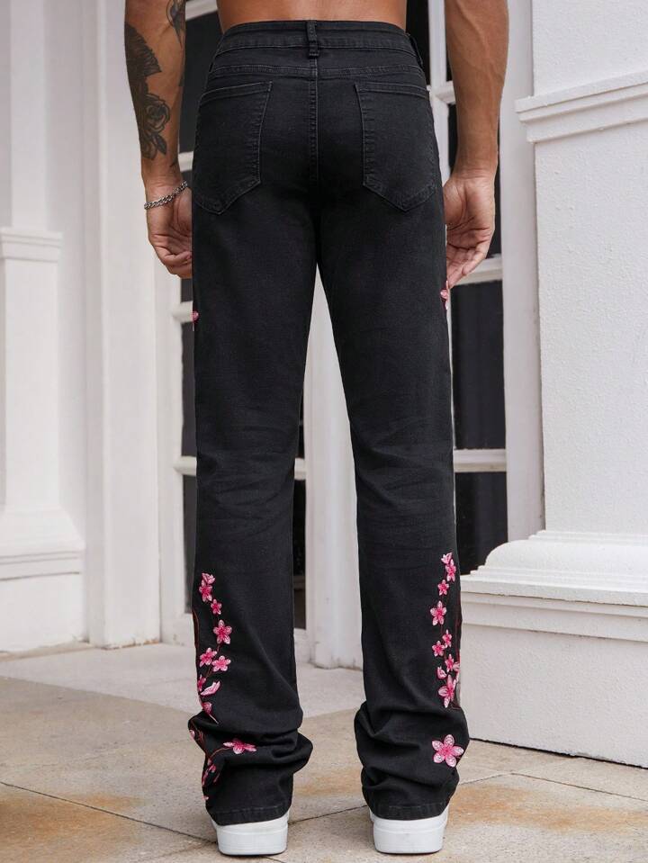 Street Life Jeans évasés à empiècements en dentelle fleurie pour homme