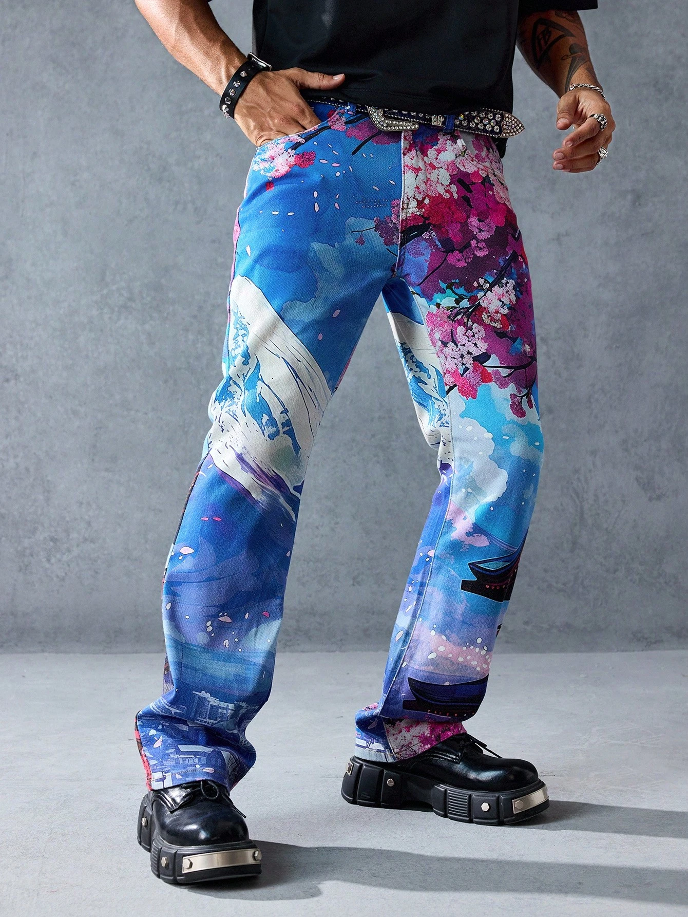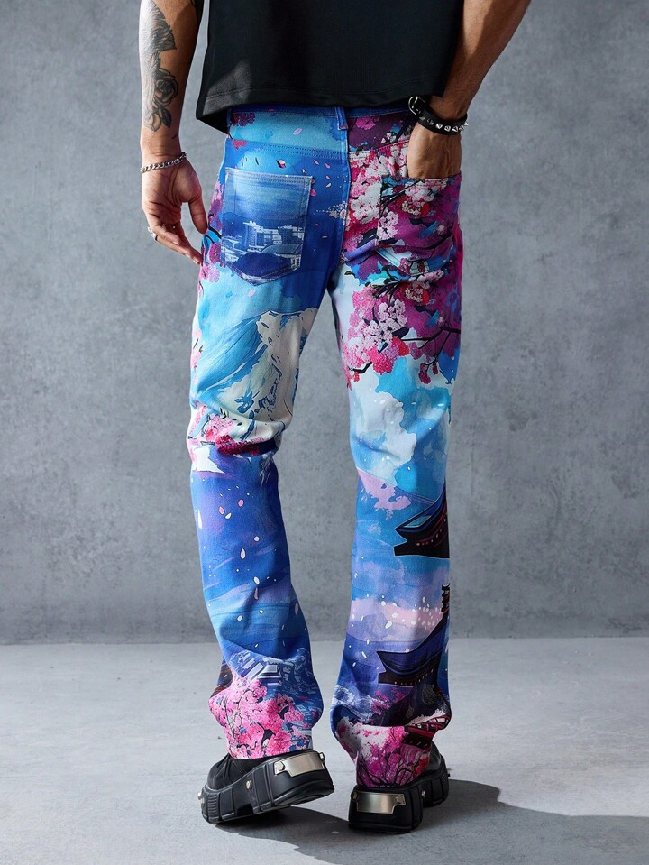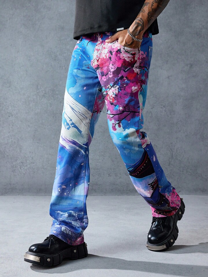 Street Life Jeans en denim avec imprimé floral sur la poche pour hommes