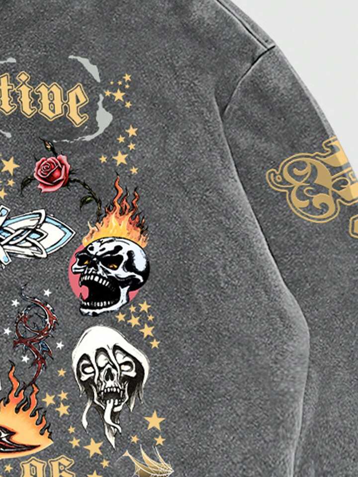 Street Life sweat-shirt à capuche homme vintage lavé avec portrait graphique de graffiti amusant, style street-wear
