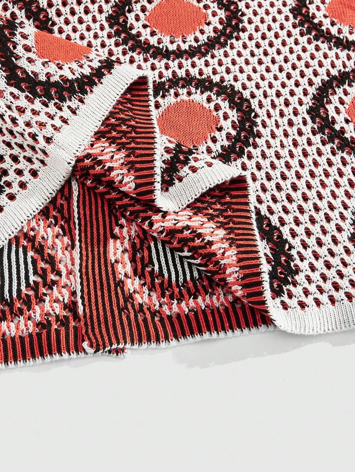 Street Life Pull court à manches courtes avec motif géométrique ajouré en jacquard, convient pour le port quotidien au printemps et en été