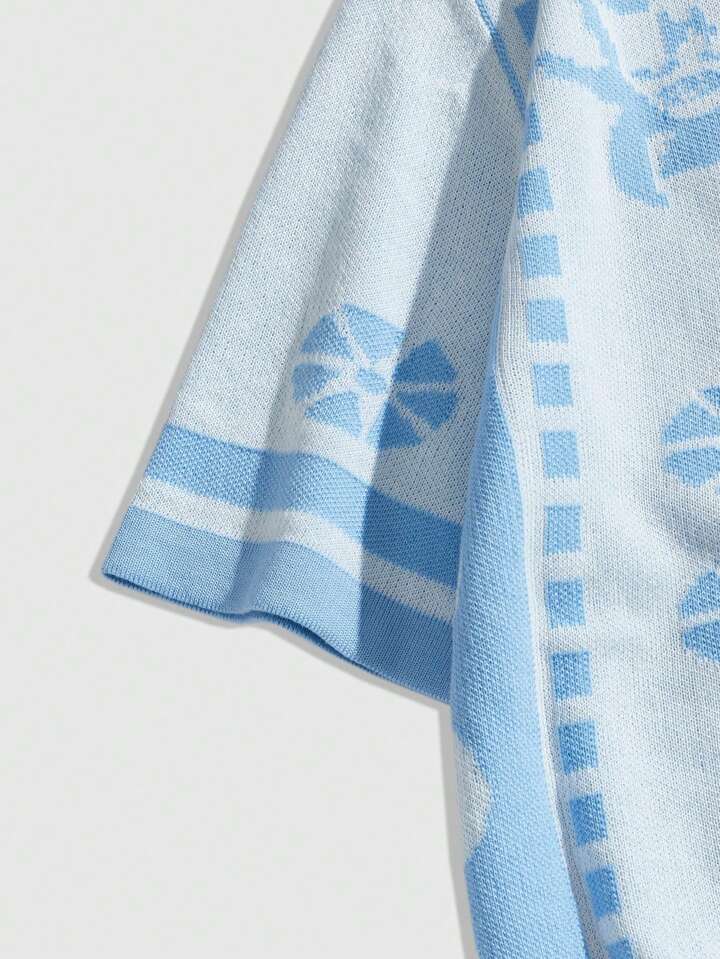 Street Life Top tricoté manches courtes à motif géométrique avec boutons pour hommes, automne/hiver