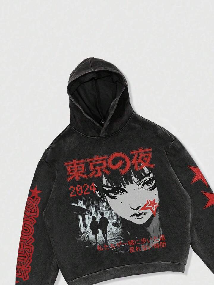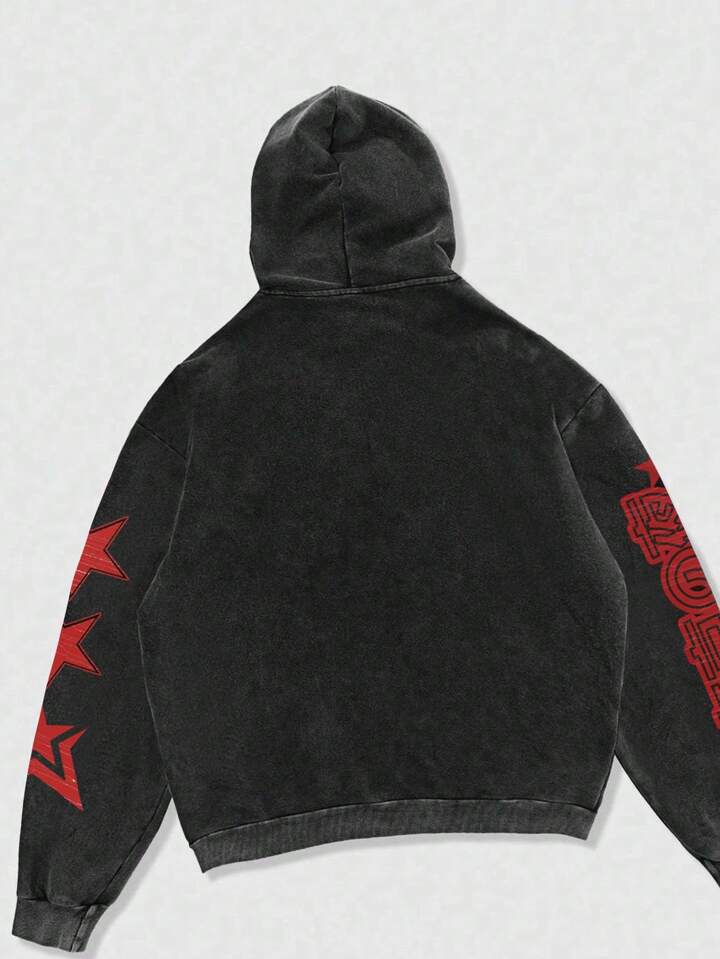 Street Life sweat-shirt à capuche homme gothique, imprimé avec un personnage de dessin animé, lavé et délavé