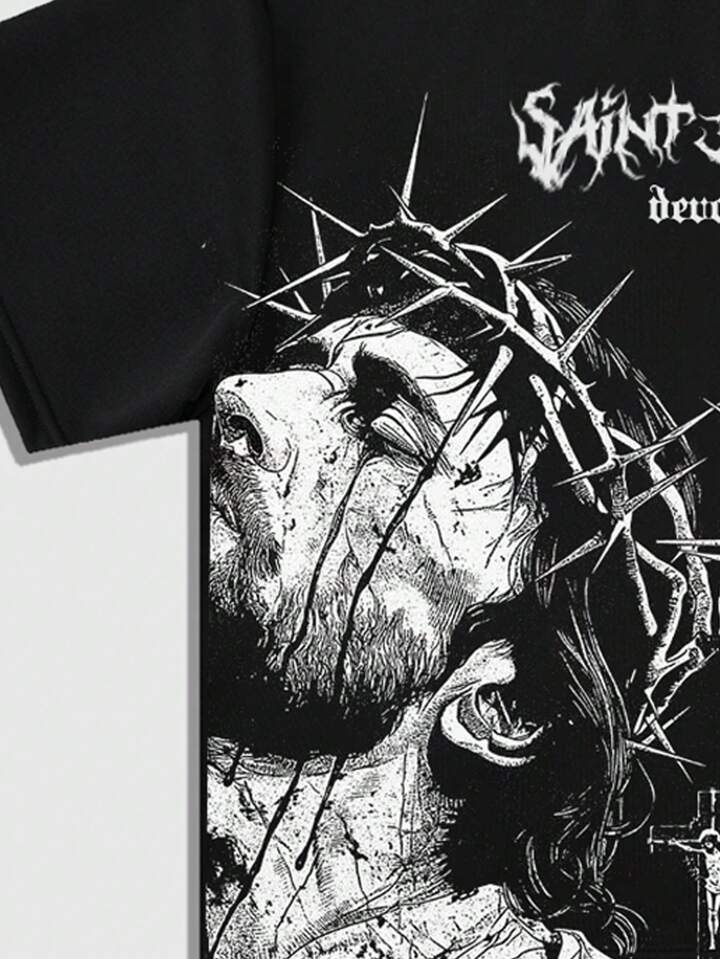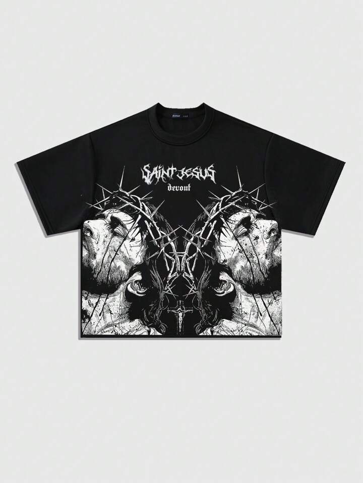 Street Life T-shirt ample à manches courtes, style gothique, coupe ample avec épaules tombantes, imprimé style punk, style de rue vintage, pour Halloween