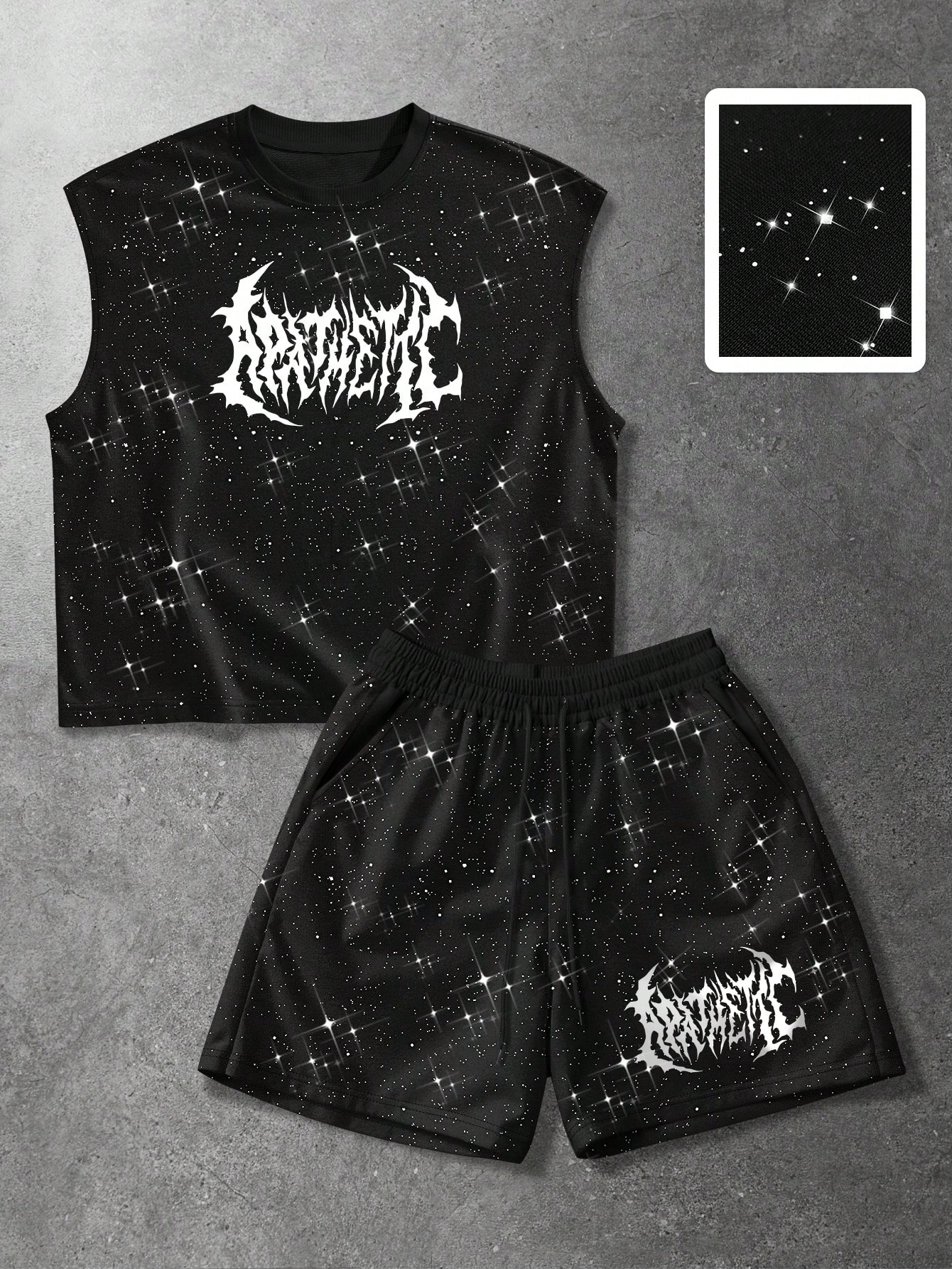 Street Life Ensemble décontracté pour hommes composé d'un débardeur à col rond brillant avec imprimé lettres gothiques et d'un short