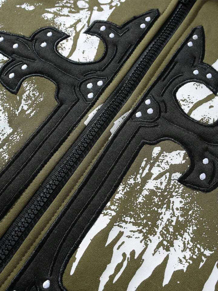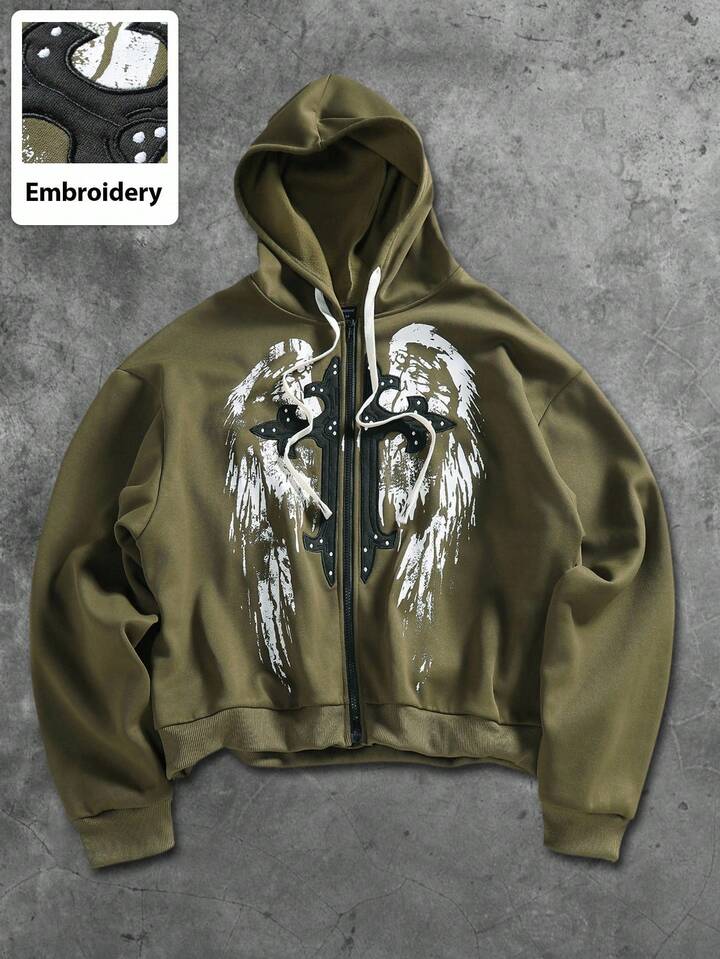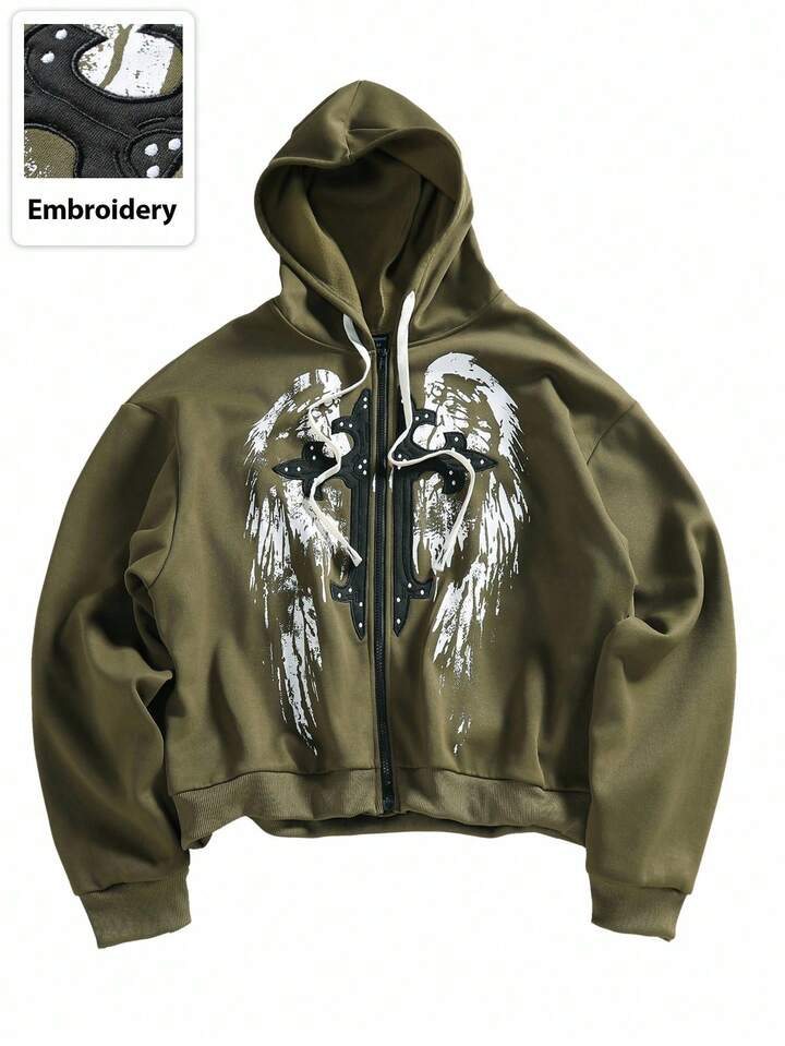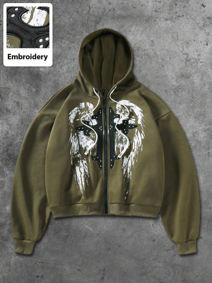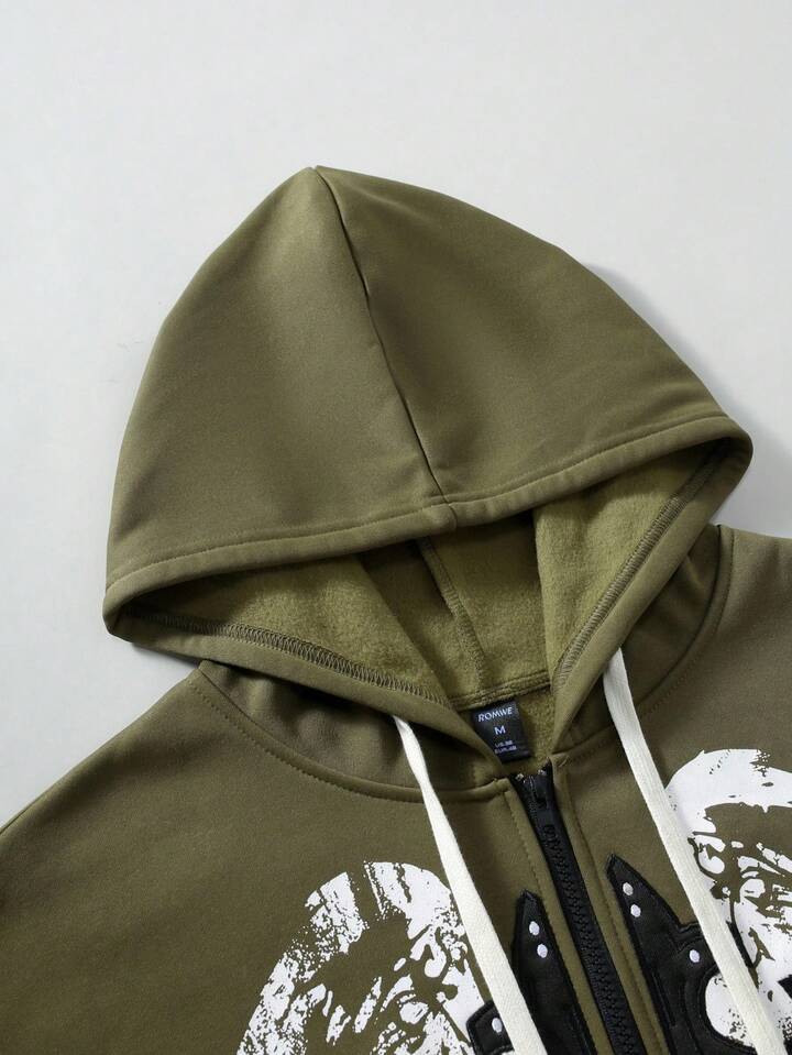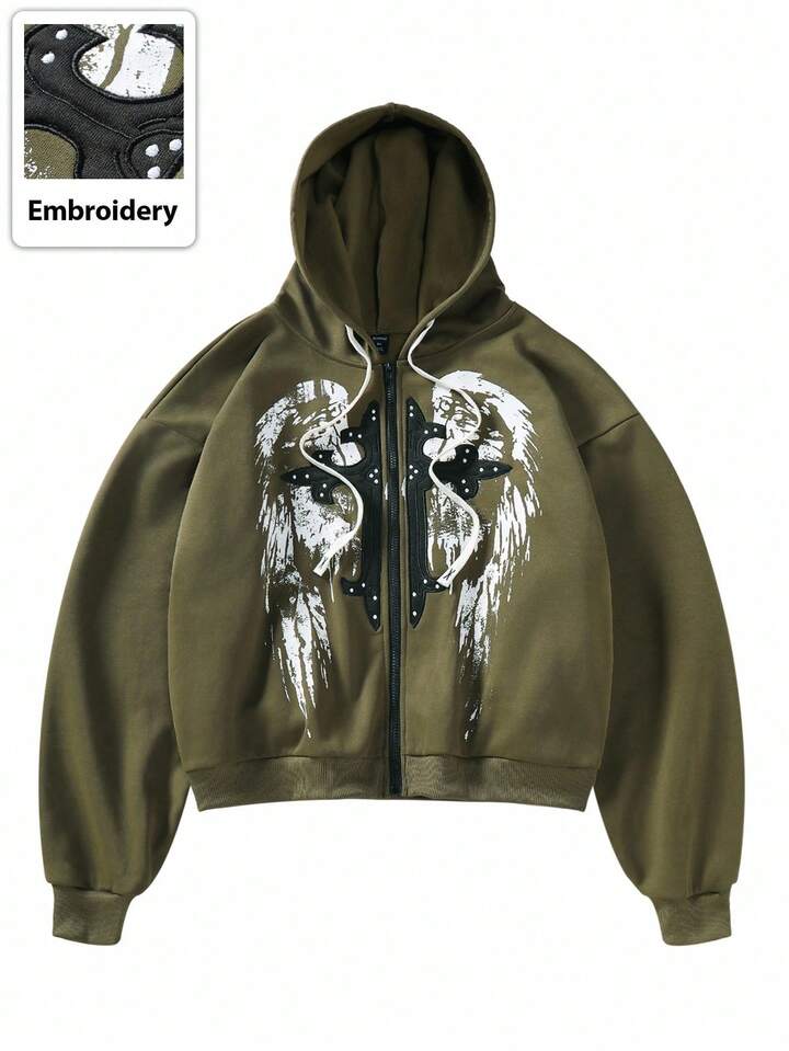 Street Life Sweat-shirt à capuche zippé avec graphique brodé pour hommes, style de rue avec design de patch américain, automne hiver