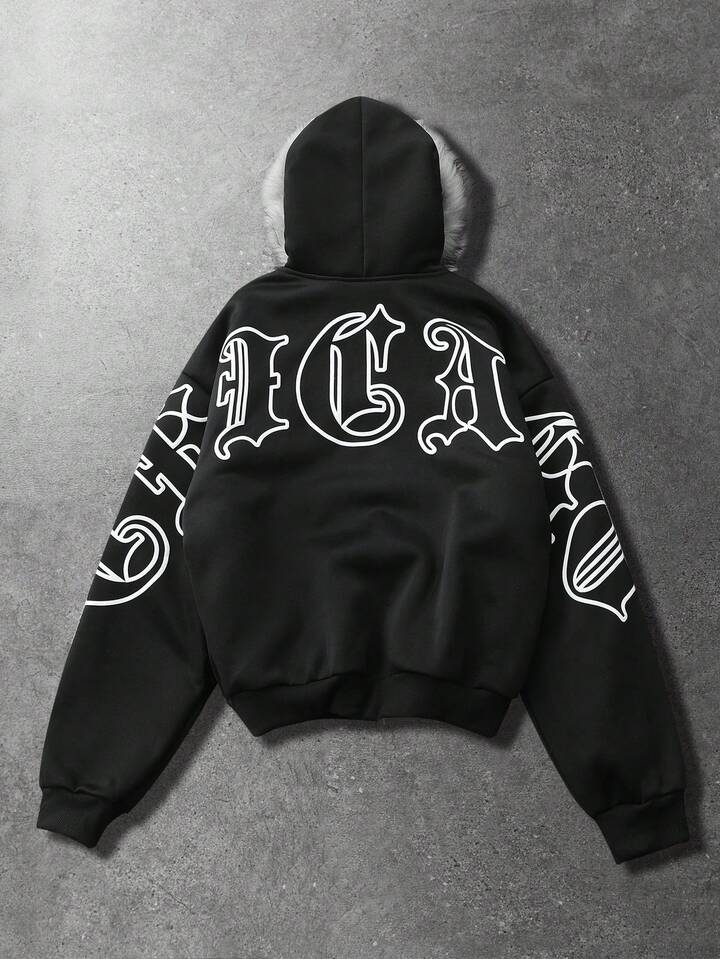 Street Life sweat-shirt à capuche doublé de polaire avec col en fourrure, imprimé graphique pour hommes, automne/hiver