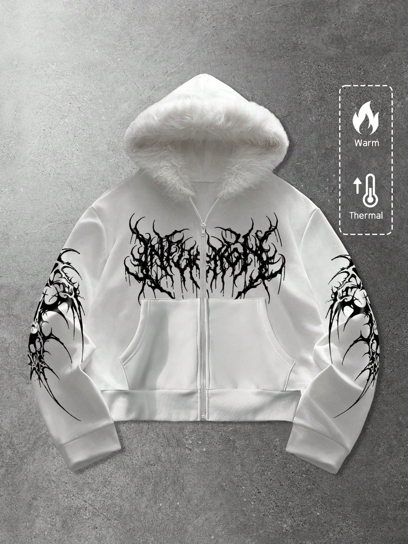 Street Life sweat-shirt à capuche thermique pour hommes avec imprimé graphique et col en fourrure, automne/hiver