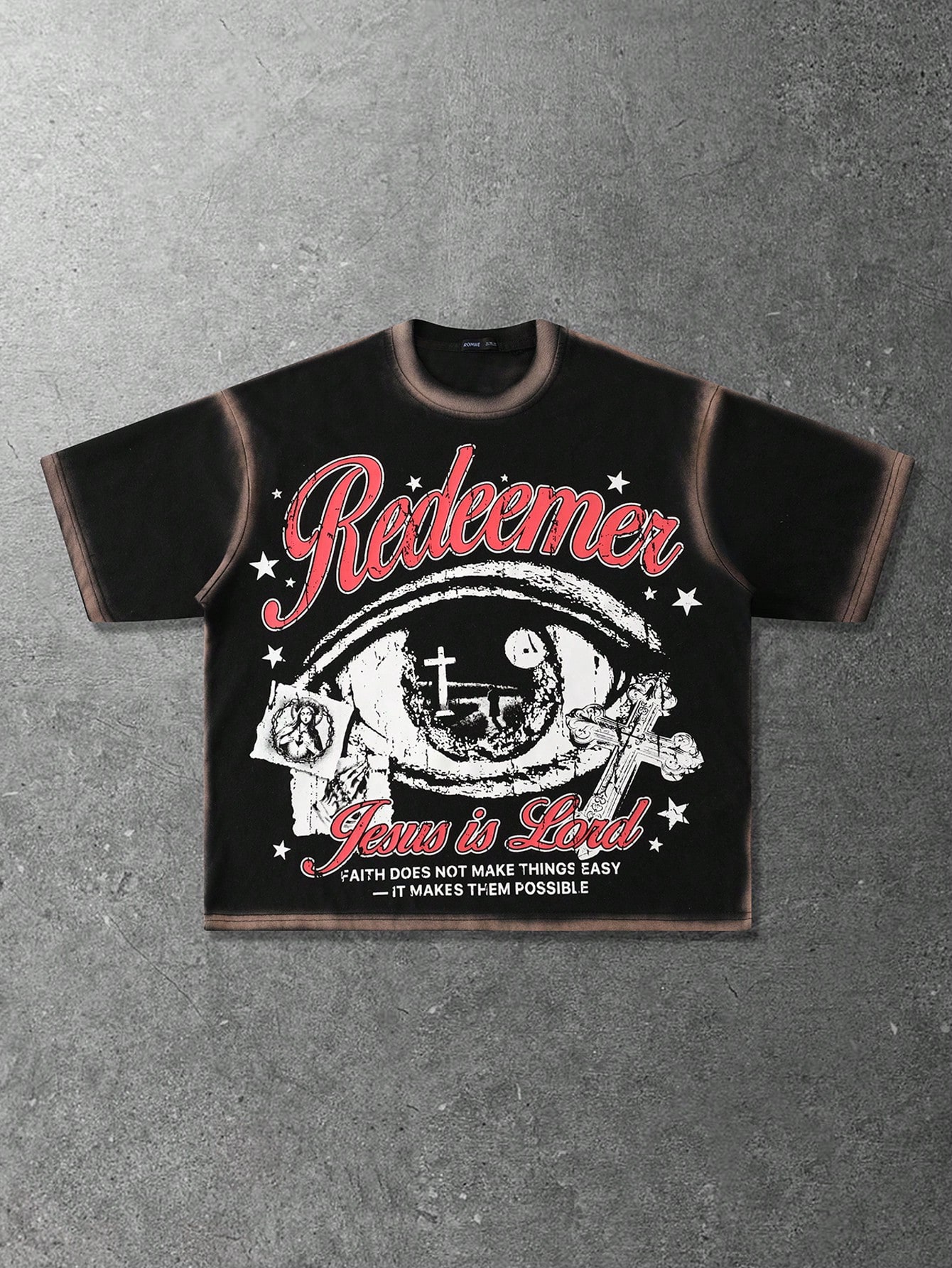 Street Life T-shirt ample à manches courtes et encolure dégagée peint à la main pour hommes