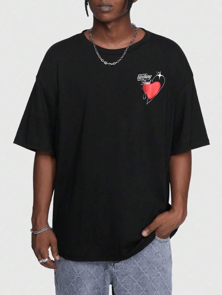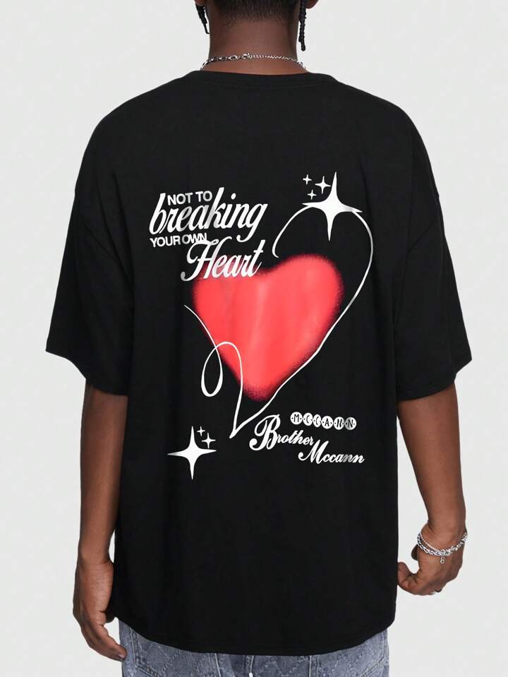 Street Life T-shirt à imprimé message en forme de cœur pour hommes, Jour de la Saint-Valentin Été
