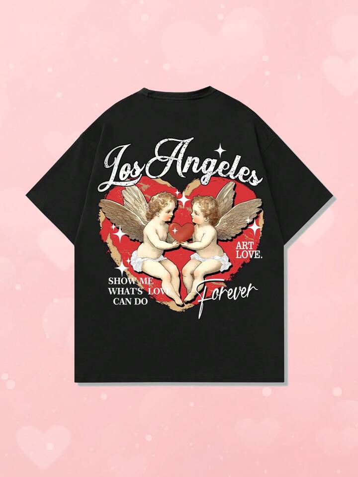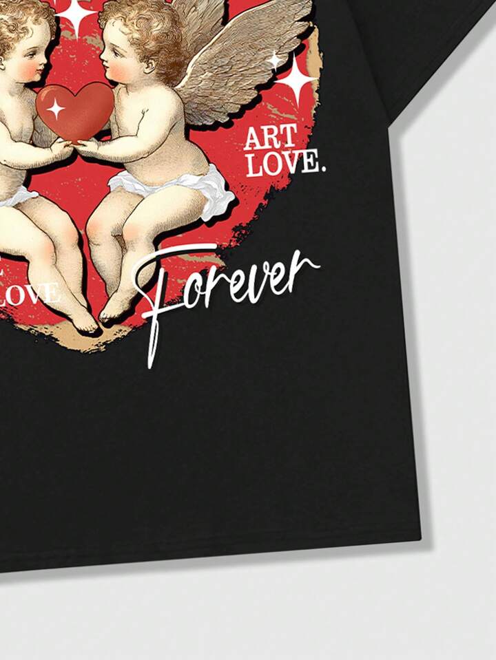 Street Life T-shirt à manches courtes pour hommes avec motif cœur, design avec XOXO/baisers/cupidon/ange/cœur