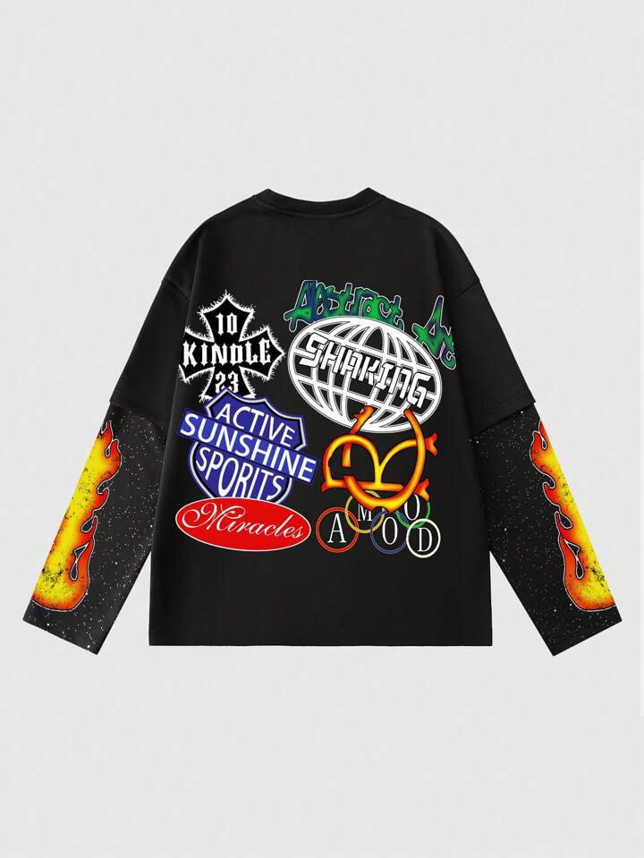 Street Life T-shirt à manches longues 2 en 1 pour hommes, style de rue