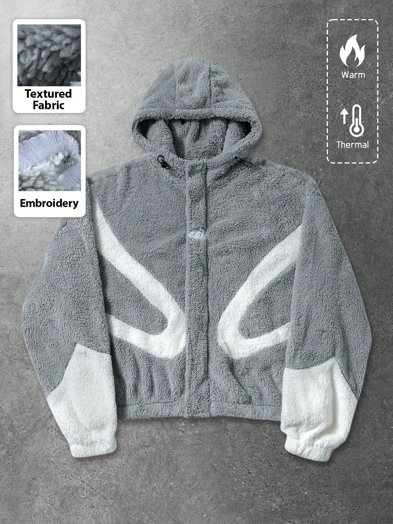 Street Life Veste et manteau pour hommes, automne/hiver, doublure thermique, épais, patchwork, couleur contrastée, broderie anglaise, veste à capuche