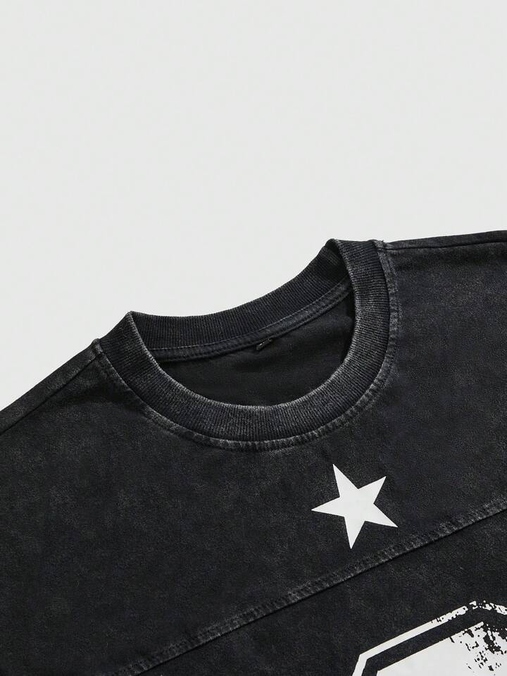 Street Life T-shirt à manches courtes pour hommes avec impression de numéros, lavé et en patchwork