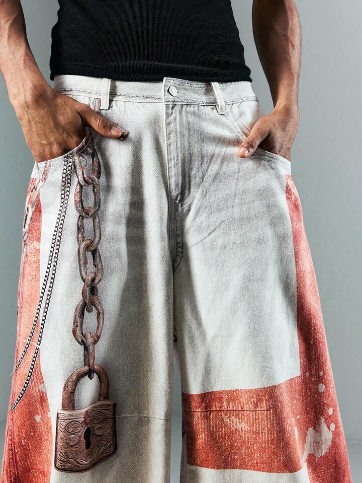 Street Life Jeans en denim casual à imprimé numérique et coupe cintrée pour hommes