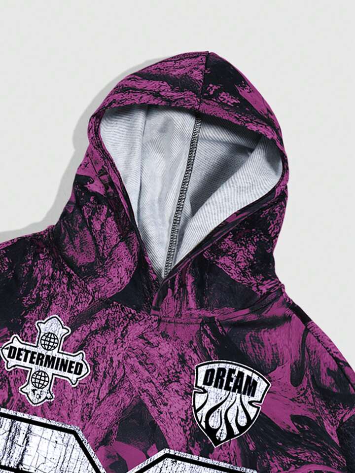 Street Life Sweat-shirt à capuche avec motif de lettres et de chiffres pour homme
