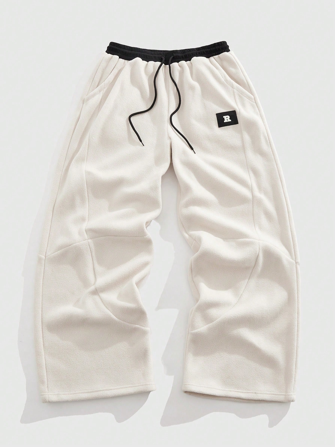 Street Life Pantalon ample à jambes larges avec cordon de serrage à la taille, poches, imprimé lettres, style décontracté. Polyvalent pour les déplacements.