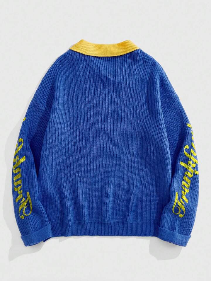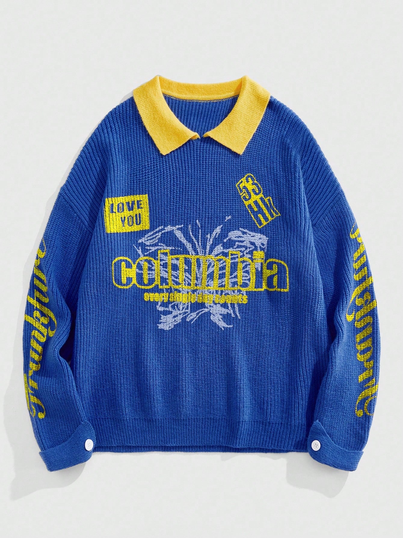 Street Life Pull tricoté à col polo imprimé pour hommes, & Cool