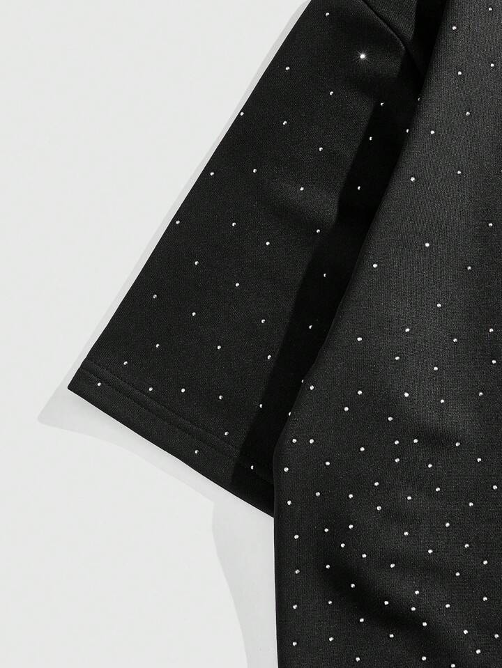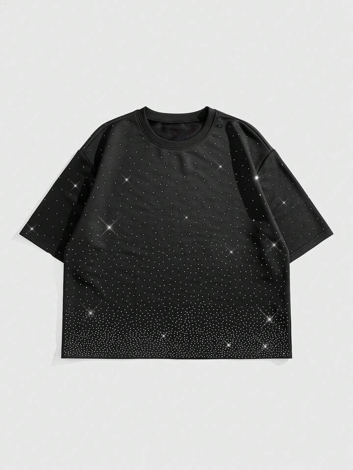 Street Life T-shirt ample à manches chauve-souris pour hommes avec décoration de strass brillants, pour rave, Halloween