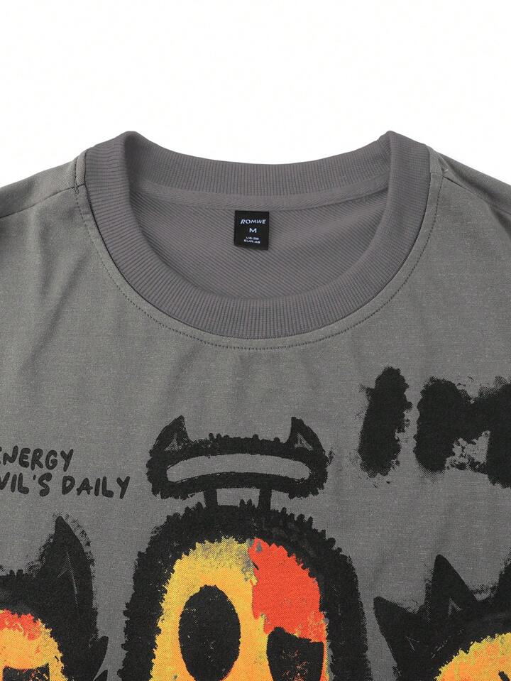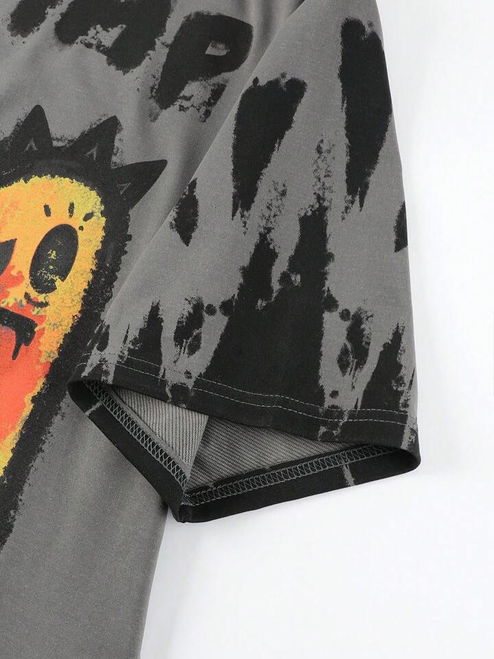 Street Life T-shirt ample à manches chauve-souris imprimé pour hommes, streetwear vintage, Halloween
