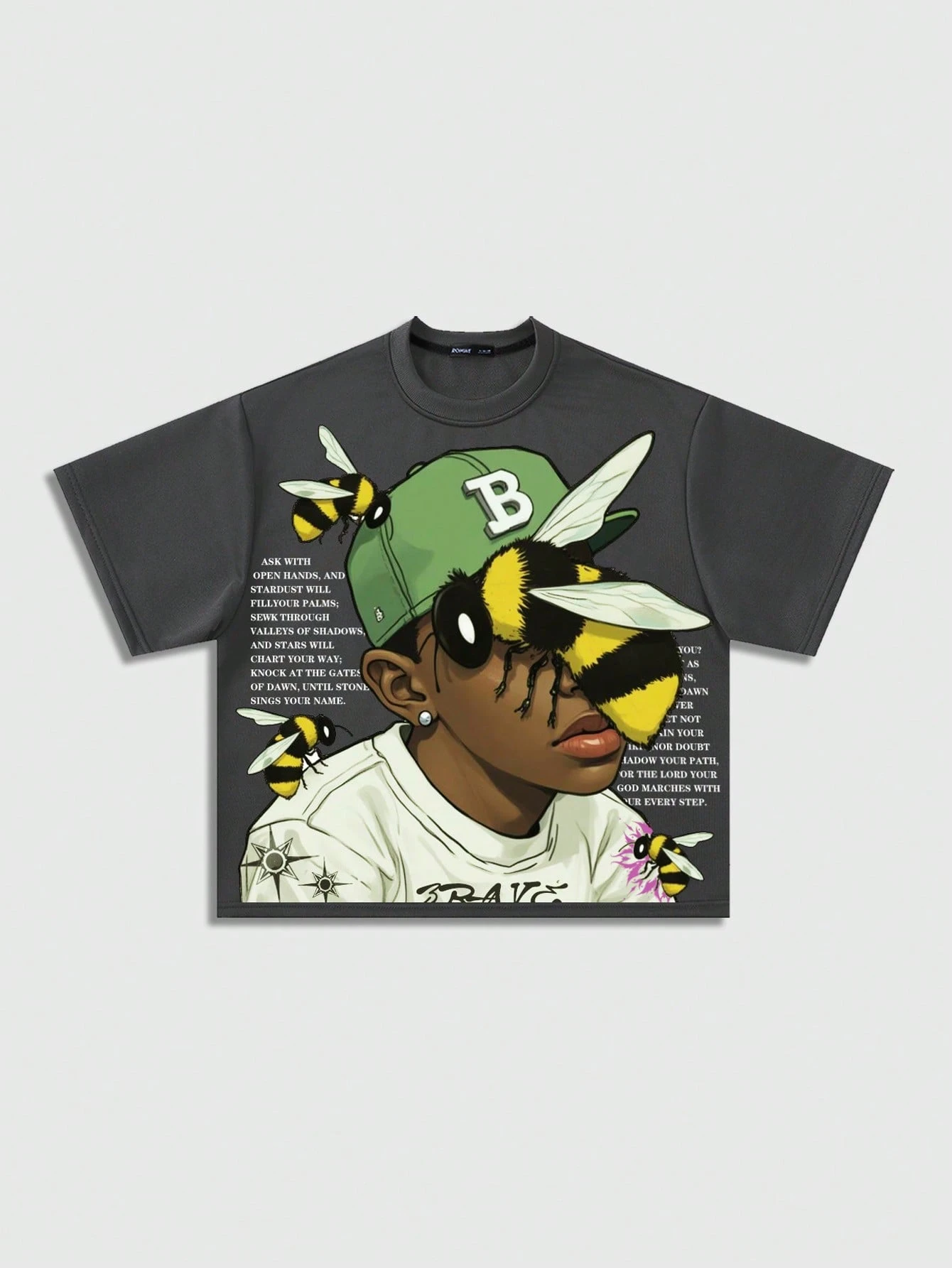 Street Life T-shirt court ample à épaules tombantes et imprimé pour hommes